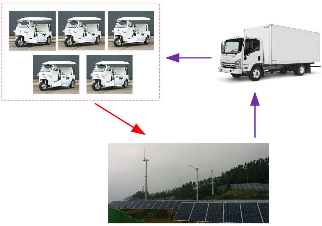 In recent years, integration of electric vehicles (EVs) has increased dramatically due to their lower carbon emissions and reduced fossil fuel dependency. However, charging EVs could have significant impacts on the electrical grid. One promising method for mitigating these impacts is the use of renewable energy systems. Renewable energy systems can also be useful for charging EVs where there is no local grid. This paper proposes a new strategy for designing a renewable energy charging station consisting of wind turbines, a photovoltaic system, and an energy storage system to avoid the use of diesel generators in remote communities. The objective function is considered to be the minimization of the total net present cost, including energy production, components setup, and financial viability. The proposed approach, using stochastic modeling, can also guarantee profitable operation of EVs and reasonable effects on renewable energy sizing, narrowing the gap between real-life daily operation patterns and the design stage. The proposed strategy should enhance the efficiency of conventional EV charging stations. The key point of this study is the efficient use of excess electricity. The infrastructure of the charging station is optimized and modeled.