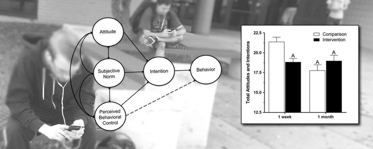 Excessive cell phone use contributes to distracted driving, may increase risk for automobile accidents, and a minority of mobile phone users exhibit behaviors consistent with technological addiction. The purpose of this study was to determine whether cell phone beliefs and behaviors could be changed by a brief educational encounter. The Theory of Reasoned Action provided a lens for viewing attitudes and behavior. A one-week pre-post design with a thirty-day follow-up was used with participants (N = 215, 67.0% female, age = 20.0 + 1.6) assigned to a peer led intervention or comparison groups. The intervention included cell-phone educational materials. A short index of cell phone behavior was developed which showed good internal consistency with a Cronbach’s alpha of .81. The intervention group “agreed” or “strongly-agreed” more than the comparison group on five of the seven areas of cell phone beliefs and behaviors ( p < 0.05, item Cohen’s d = .32 to .47, total d = .50) at one-week following receipt of informational materials. We conclude that attitudes and behaviors regarding cell phones are malleable and susceptible to change in young-adults following a brief psychoeducational intervention.