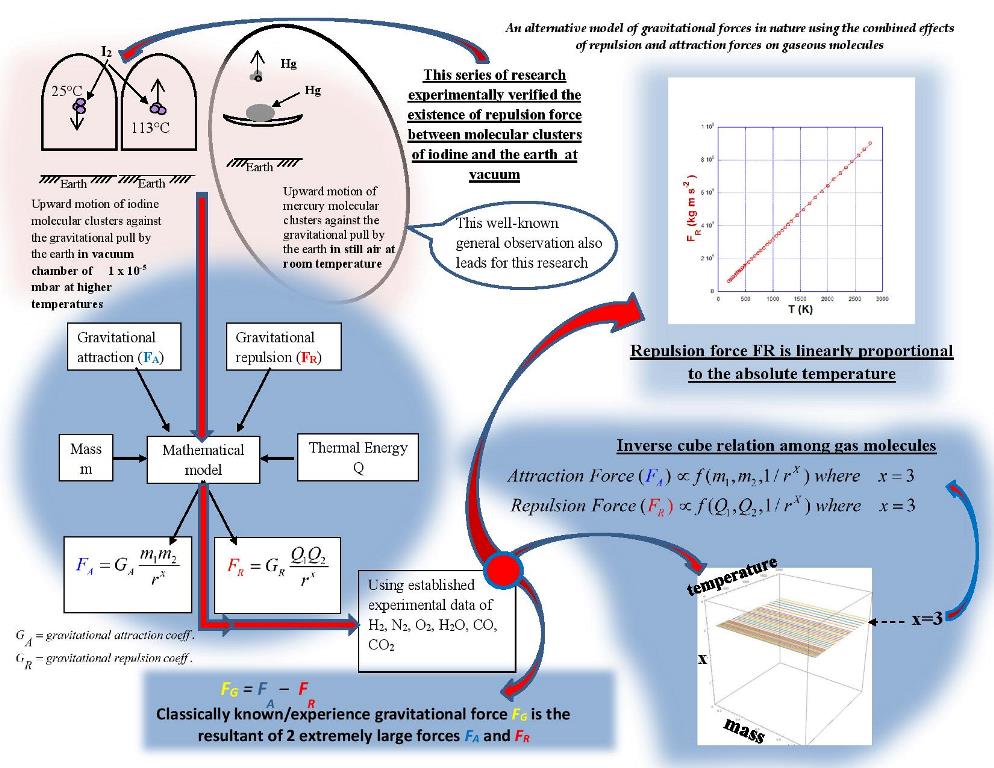 The discussion so far has briefly indicated why we need a deviation from the existing gravitational models; Newtonian ‘Law of Universal Gravity’ and Einsteinian ‘EFE’. Also, we need to deviate from a major idealistic assumption made in the kinetic theory of ideal gas. Now, our attempt is to develop a relationship to better understand the behavior of gas molecules with the force of repulsive nature on matter; antigravity.