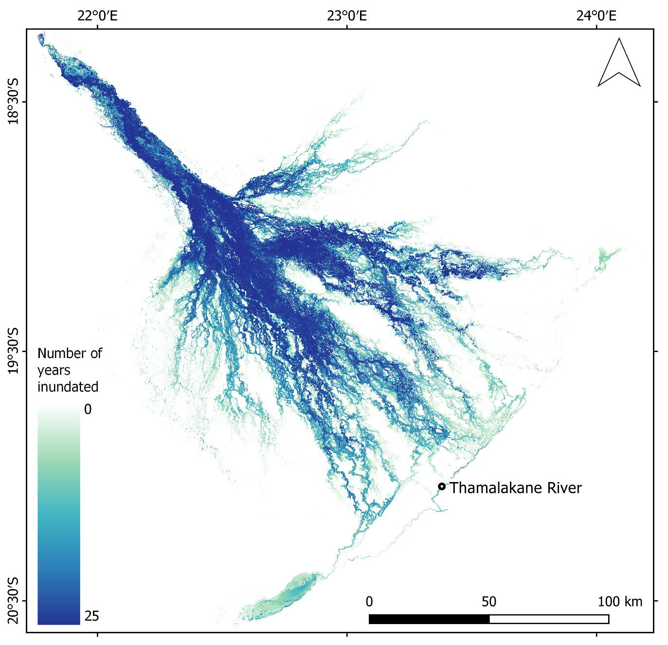 Accurate inundation maps for flooded wetlands and rivers are a critical resource for their management and conservation. In this paper we automate a method (thresholding of the short-wave infrared band) for classifying inundation, using Landsat imagery and Google Earth Engine. We demonstrate the method in the Okavango Delta, northern Botswana, a complex case study due to the spectral overlap between inundated areas covered with aquatic vegetation and dryland vegetation classes on satellite imagery. Inundation classifications in the Okavango Delta have predominately been implemented on broad spatial resolution images. We present the longest time series to date (1990-2019) of inundation maps at high spatial resolution (30m) for the Okavango Delta. We validated the maps using image-based and in situ data accuracy assessments, with accuracy ranging from 91.5 - 98.1%. Use of Landsat imagery resulted in consistently lower estimates of inundation extent than previous studies, likely due to the increased number of mixed pixels that occur when using broad spatial resolution imagery, which can lead to overestimations of the size of inundated areas. We provide the inundation maps and Google Earth Engine code for public use.