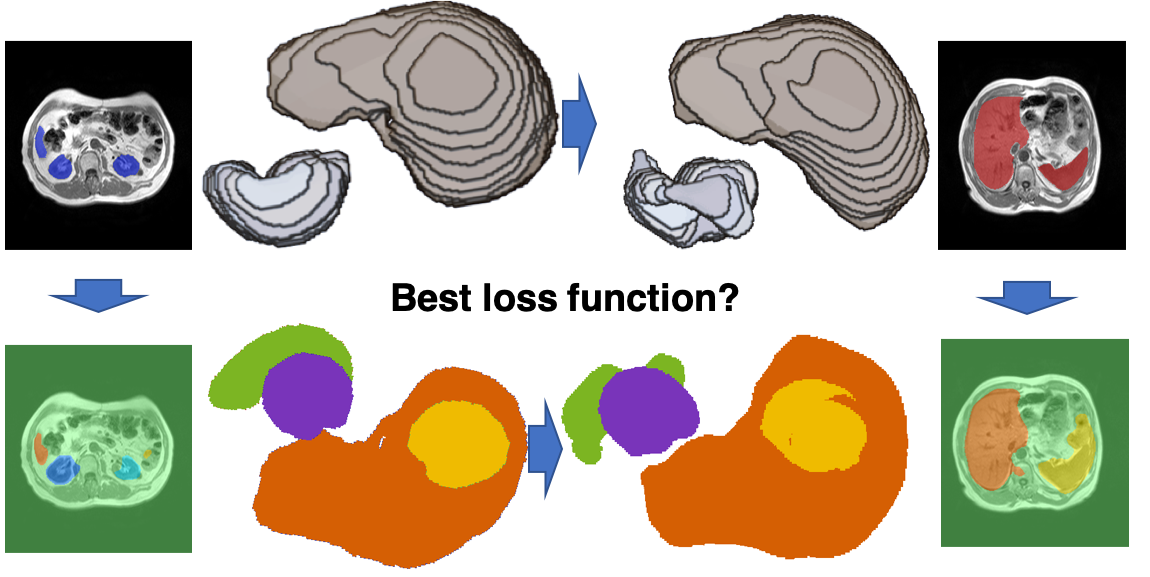 Segmentation of Magnetic Resonance Images (MRI) of abdominal organs is useful for analysis prior to surgical procedures and for further processing. Deep Learning (DL) has become the standard, researchers have proposed improvements that include multiple views, ensembles and voting. Loss function alternatives, while being crucial to guide automated learning, have not been compared in detail. In this work we analyze limitations of popular metrics and their use as loss, study alternative loss variations based on those and other modifications and search for the best approach. An experimental setup was necessary to assess the alternatives. Results for the top scoring network and top scoring loss show improvements between 2 and 11 percentage points (pp) in Jaccard Index (JI), depending on organ and patient (sequence), for a total of 22 pp over 4 organs, all this being obtained just by choosing the best performing loss function instead of cross-entropy or dice. Our results apply directly to MRI of abdominal organs, with important practical implications for other architectures, as they can be applied easily to any of them. They also show the worth of variants of loss function and loss tuning, with future work needed to generalize and test in other contexts.
