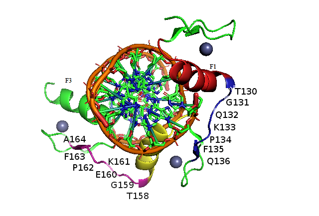 Zinc finger proteins (ZFP) play important roles in cellular processes. The DNA binding region of ZFP consists of 3 zinc finger DNA binding domains connected by amino acid linkers, the sequence TGQKP connects ZF1 and ZF2, and TGEKP connects ZF2 with ZF3. Linkers act to tune the zinc finger protein in the right position to bind its DNA target, the type of amino acid residues and length of linkers reflect on ZF1-ZF2-ZF3 interactions and contribute to the search and recognition process of ZF protein to its DNA target. Linker mutations and the affinity of the resulting mutants to specific and nonspecific DNA targets were studied by MD simulations and MM_GB(PB)SA. The affinity of mutants to DNA varied with type and position of amino acid residue. Mutation of K in TGQKP resulted in loss in affinity due to the loss of positive K interaction with phosphates, mutation of G showed loss in affinity to DNA, WT protein and all linker mutants showed loss in affinity to a nonspecific DNA target, this finding confirms previous reports which interpreted this loss in affinity as due to ZF1 having an anchoring role, and ZF3 playing an explorer role in the binding mechanism. The change in ZFP-DNA affinity with linker mutations is discussed in view of protein structure and role of linker residues in binding.