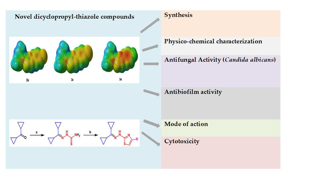 There is a need to search for new antifungals, especially for the treatment of the invasive Candida infections, caused mainly by C. albicans. These infections are steadily increasing at an alarming rate, mostly among immunocompromised patients. The newly synthesized compounds (3a-3k) were characterized by physico-chemical parameters and investigated for antimicrobial activity using the microdilution broth method to estimate minimal inhibitory concentration (MIC). Additionally, their antibiofilm activity and mode of action together with the effect on the membrane permeability in C. albicans were investigated. Biofilm biomass and its metabolic activity were quantitatively measured using crystal violet (CV) staining and tetrazolium salt (XTT) reduction assay. The cytotoxic effect on normal human lung fibroblasts and hemolytic effect were also evaluated. The results showed differential activity of the compounds against yeasts (MIC = 0.24-500 µg/mL) and bacteria (MIC = 125-1000 µg/mL). Most compounds possessed strong antifungal activity (MIC = 0.24-7.81 µg/mL). The compounds 3b, 3c, and 3e, showed no inhibitory (at 1/2 MIC) and eradication (at 8 x MIC) effect on C. albicans biofilm. Only slight decrease in the biofilm metabolic activity was observed for compound 3b. Moreover, the studied compounds increased the permeability of the membrane/cell wall of C. albicans and their mode of action may be related to action within the fungal cell wall structure and/or within the cell membrane. It is worth noting that the compounds had no cytotoxicity effect on pulmonary fibroblasts and erythrocytes at concentrations showing anticandidal activity. The present studies in vitro confirm that these derivatives appear to be a very promising group of antifungals for further preclinical studies.