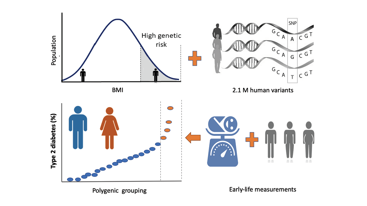 One of the major challenges in the post-genomic era is elucidating the genetic basis of human diseases. In recent years, studies have shown that polygenic risk scores (PRS), based on aggregated information from millions of variants across the human genome, can estimate individual risk for common diseases. In practice, the current medical practice still predominantly relies on physiological and clinical indicators to assess personal disease risk. For example, caregivers mark individuals with high body mass index (BMI) as having an increased risk to develop type 2 diabetes (T2D). An important question is whether combining PRS with clinical metrics can increase the power of disease prediction in particular from early life. In this work we examined this question, focusing on T2D. We show that an integrated approach combining adult BMI and PRS achieves considerably better prediction than each of the measures on unrelated Caucasians in the UK Biobank (UKB, n=290,584). Likewise, integrating PRS with self-reports on birth weight (n=172,239) and comparative body size at age ten (n=287,203) also substantially enhance prediction as compared to each of its components. While the integration of PRS with BMI achieved better results as compared to the other measurements, the latter are early-life measurements that can be integrated already at childhood, to allow preemptive intervention for those at high risk to develop T2D. Our integrated approach can be easily generalized to other diseases, with the relevant early-life measurements.