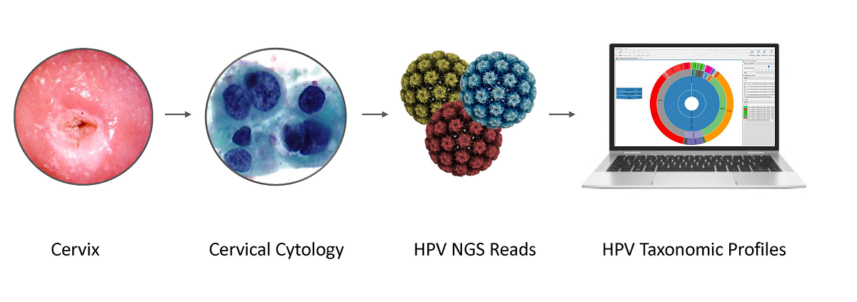Next-generation sequencing (NGS) has actualized human papillomavirus (HPV) virome profiling for in-depth investigation of viral evolution and pathogenesis. However, viral computational analysis remains a bottleneck due to semantic discrepancies between computational tools and curated reference genomes. To address this, we developed and tested automated workflows for HPV taxonomic profiling and visualization using a customized Papillomavirus database in CLC Microbial Genomics Module. HPV genomes from Papilloma Virus Episteme were customized and incorporated into CLC “ready-to-use” workflows for stepwise data processing to include: 1) Taxonomic Analysis, 2) Estimate Alpha/Beta Diversities, and 3) Map Reads to Reference. Low-grade (n = 95) and high-grade (n = 60) Pap smears were tested with ensuing collective runtimes: Taxonomic Analysis (36 min); Alpha/Beta Diversities (5 sec); Map Reads (45 min). Tabular output conversion to visualizations entailed 1-2 keystrokes. Biodiversity analysis between low- (LSIL) and high-grade squamous intraepithelial lesions (HSIL) revealed loss of species richness and gain of dominance by HPV-16 in HSIL. Integrating clinically relevant, taxonomized HPV reference genomes within automated workflows proved to be an ultra-fast method of virome profiling. The entire process named “HPV DeepSeq” provides a simple, accurate and practical means of NGS data analysis for a broad range of applications in viral research.