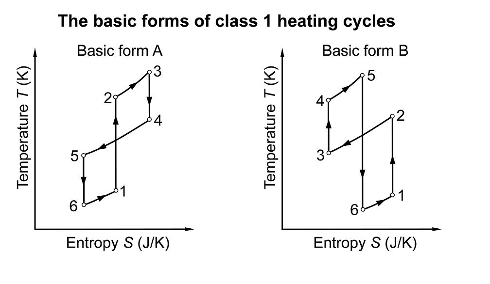Thermodynamic cycles are not only the core concepts of thermal science, but also key approaches to energy conversion and utilization. So far, power cycles and refrigeration cycles have been the only two general classes of thermodynamic cycles. While diverse types of systems have been developed to perform thermodynamic cycles, no new general classes of thermodynamic cycles have been proposed. Based on the basic principles of thermodynamics, here we propose and analyze a new general class of thermodynamic cycles named class 1 heating cycles (HC-1s). Two basic forms of HC-1s are obtained by connecting six essential thermodynamic processes in the proper order and forming a thermodynamic cycle. HC-1s present the simplest and most general approach to utilizing the temperature difference between a high-temperature heat source and a medium-temperature heat sink to achieve efficient medium-temperature heating and/or low-temperature cooling. HC-1s fill the gaps that have existed since the origin of thermal science, and they will play significant roles in energy conservation and emission reduction.