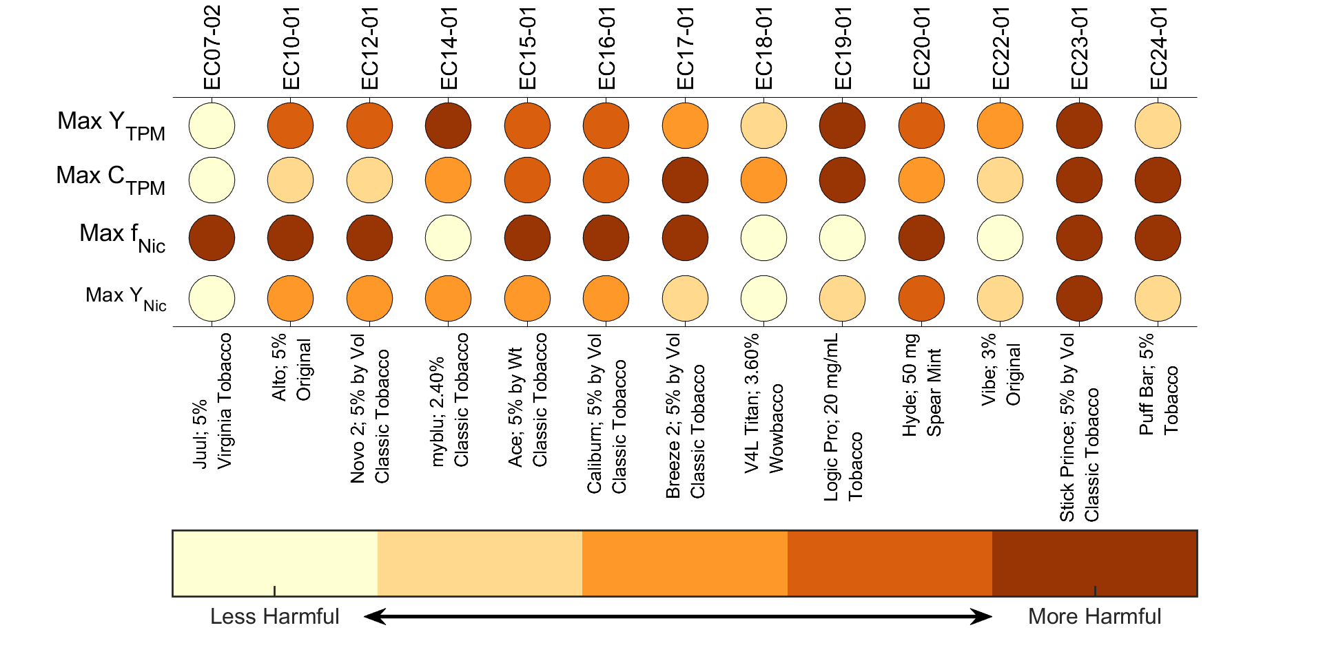 This study introduces and demonstrates a comprehensive, accurate, unbiased approach to robust quantitative comparison of Electronic Nicotine Delivery Systems (ENDS) appropriate for establishing substantial equivalence (or lack thereof) between tobacco products. The approach is demonstrated across a family of thirteen pen- and pod-style ENDS products. Methods employed consist of formulating a robust emissions surface regression model, quantifying the empirical accuracy of the model as applied to each product, evaluating relationships between product design characteristics and maximum emissions characteristics, and presenting results in formats useful to researchers, regulators, and consumers. Results provide a response surface to characterize emissions (total particulate matter and constituents thereof) from each ENDS appropriate for use in a computer model and for conducting quantitative exposure comparisons between products. Results demonstrate that emissions vary as a function of puff duration, flow rate, E-Liquid composition, and device operating power. Further, results indicate that regulating design characteristics of ENDS devices and consumables may not achieve desired public health outcomes; it is more effective to regulate maximum permissible emissions directly. Three emissions outcome measures (yield per puff, mass concentration and constituent mass ratio) are recommended for adoption as standard quantities for reporting by manufacturers and research laboratories. The approach provides a means of (a) quantifying and comparing maximal emissions from ENDS products spanning their entire operating envelope, (b) comparative evaluation of ENDS devices and consumable design characteristics, and (c) establishing comparative equivalence of maximal emissions from ENDS. A consumer-oriented product emissions dashboard is proposed for comparative evaluation of ENDS exposure potential. Maximum achievable power dissipated in the coil of ENDS is identified as a potentially effective regulatory parameter.