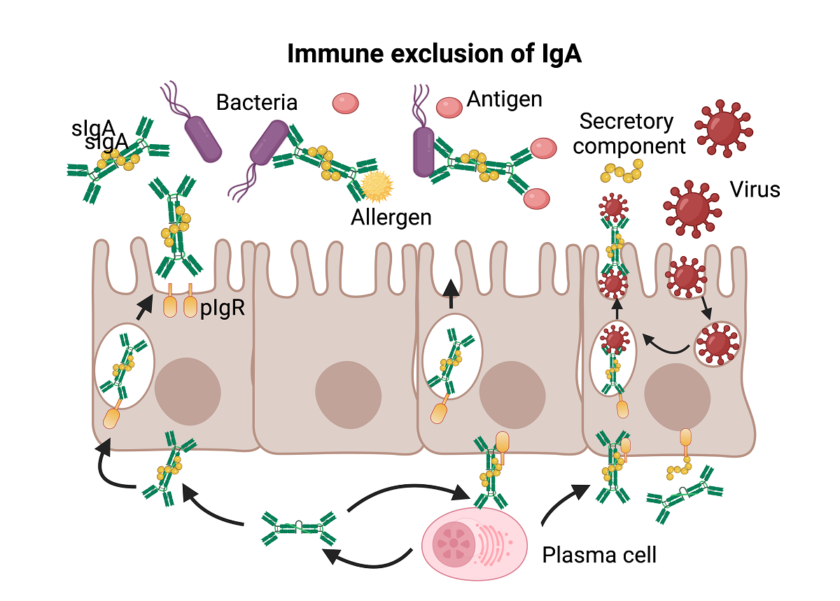 Nasal cavity is a primary checkpoint for the invasion of several respiratory pathogens. Numerous pathogens including SARS-CoV-2, S. pneumonia, S. aureus, etc., adhere to the nasal epithelium or mucus to invade and trigger an infection. IgA serves as the first line of defense against foreign antigens and pathogens. They exhibit cross-reactivity against a diverse variety of antigens through immune exclusion, which intercepts the invasion of pathogens through the mucosal lining. Advances in intranasal immunization technology underscore the elevated neutralizing IgA levels at local and distal mucosa in contrast to the parenteral vaccines. This review highlights the adjuvants that induce IgA class switching and the challenges of maintaining nominal IgA levels at the mucosal surface. Finally, the review features the paradigm-shifting of conventional immunization techniques to IgA-inducing vaccines to enhance protection against homologous and heterologous pathogens.