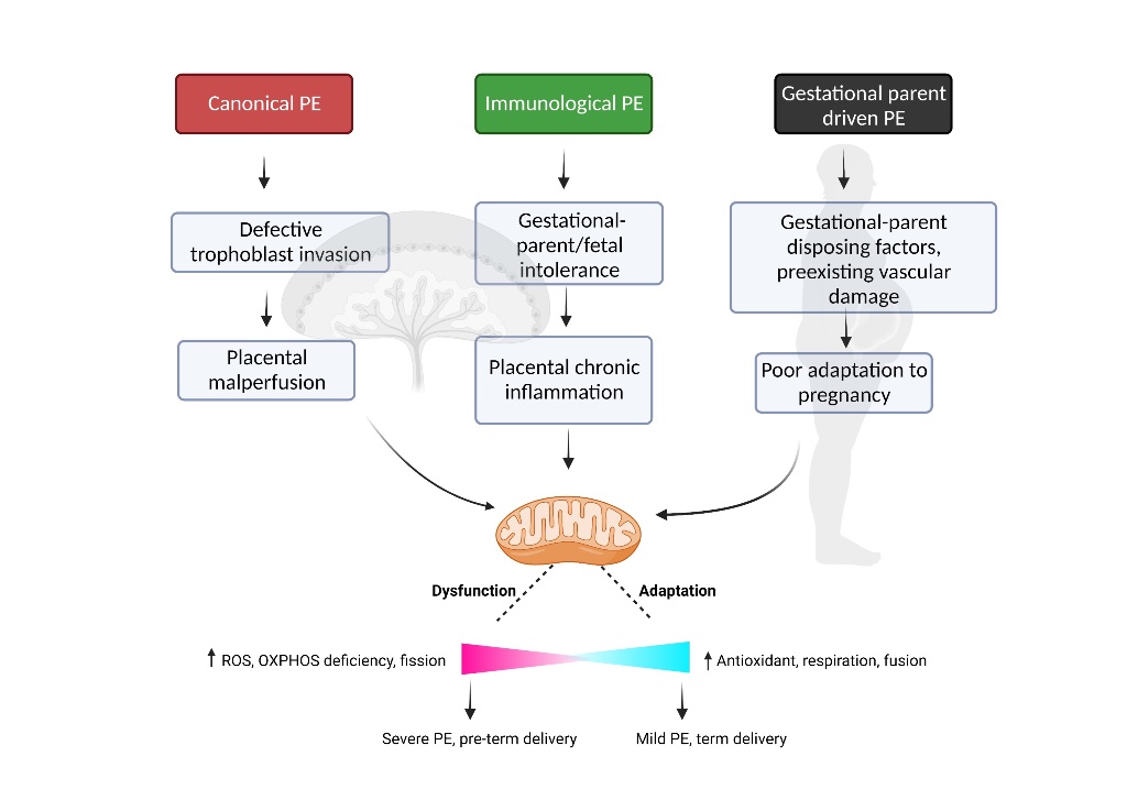 Mitochondrial dysfunction has been widely implicated as a central component to the establishment of placental and gestational parent disease in cases of PE [