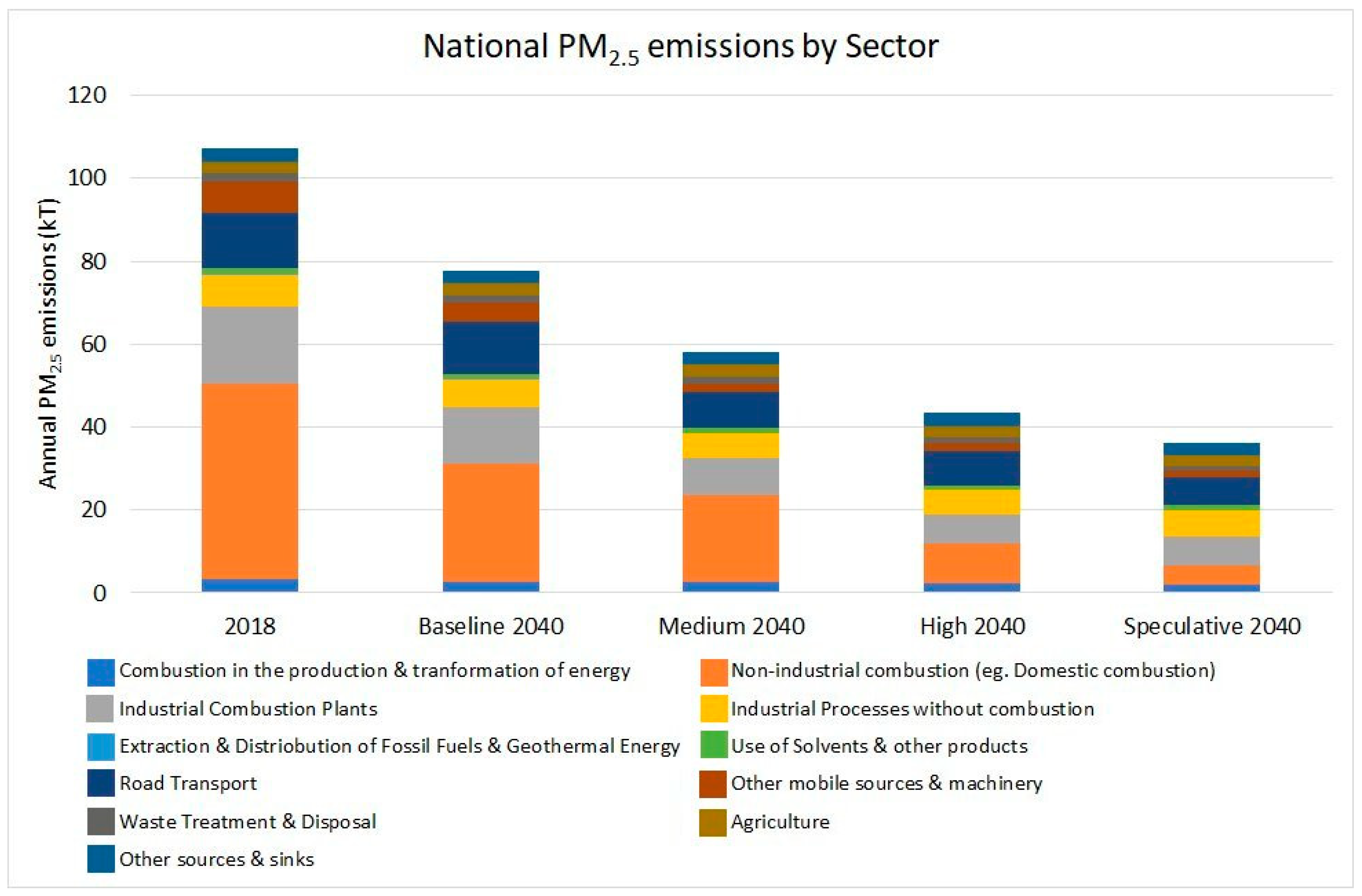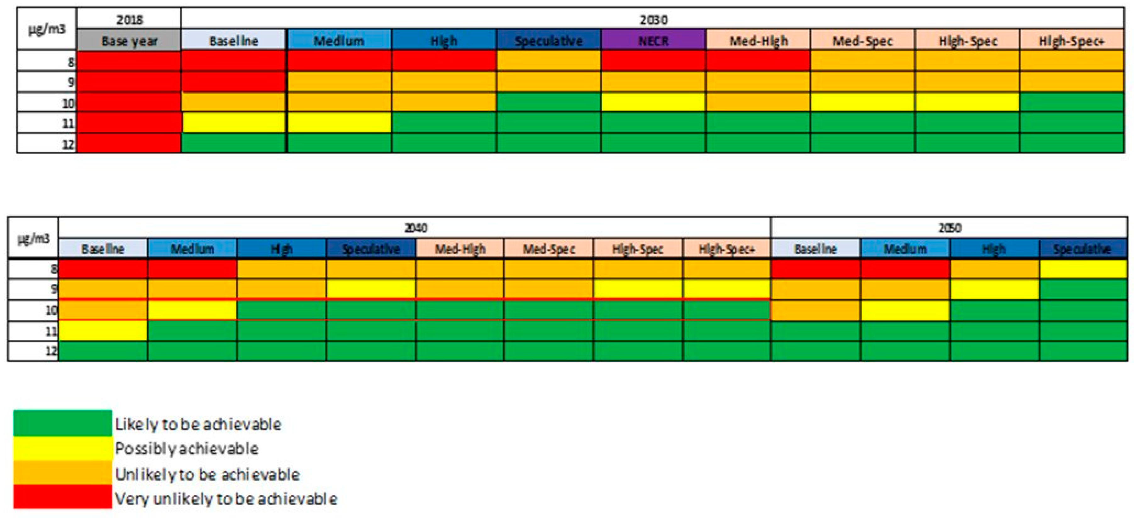 https://www.emisia.com/utilities/copert/). The baseline projections show large improvements in air quality, expected by 2030 as a result of existing measures/trends. Medium, high and speculative scenarios have been modelled with successively greater emission reductions applied to these baseline projections: