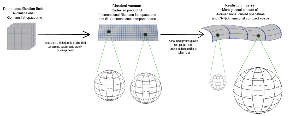 We present a geometric field theory in which the action and field equation are constructed from an ultra-high-density vector field and its covariant derivative and have full general covariance in a higher-dimensional spacetime. The field equation is the simplest possible generalisation of the Poisson equation for gravity consistent with general covariance and the equivalence principle. It contains the Ricci tensor and metric acting as operators on the vector field. If the covariant derivative is diagonalisable across a neighbourhood under real changes of coordinate basis, spacetime coincides with a product manifold. The dimensionalities of the factor spaces are determined by its eigenvalues and hence by its algebraic invariants. Tensors decompose into multiplets which have both Lorentz and internal symmetry indices. The field equation has a `classical vacuum' solution which is a product of Minkowski spacetime and an Einstein manifold. A worked example is provided in six dimensions. Away from this classical vacuum, connection components in appropriate coordinates include $SO(N)$ gauge fields. The Riemann tensor includes their field strength. Unitary gauge symmetries act indirectly on tensor fields and some or all of the unitary gauge fields are found amongst the $SO(N)$ gauge fields. Symmetry restoration occurs at the zero-curvature `decompactification limit', in which all dimensions appear on the same footing.