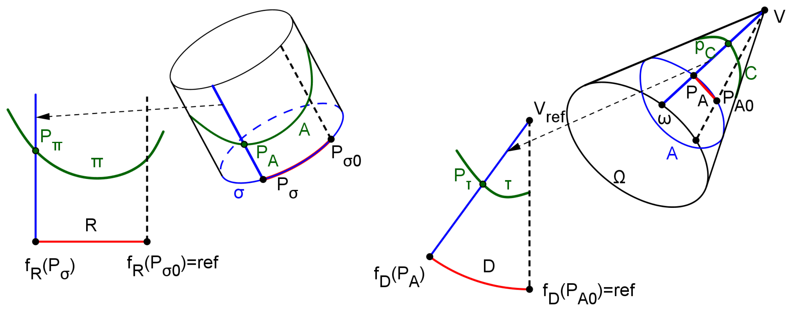 - Oprea, G.; Ruse, G. A descriptive approach of intersecting geometrical loci - the cylinder case. U.P.B. Sci. Bull., Series D 2006, 68, 81–88. [Google Scholar]