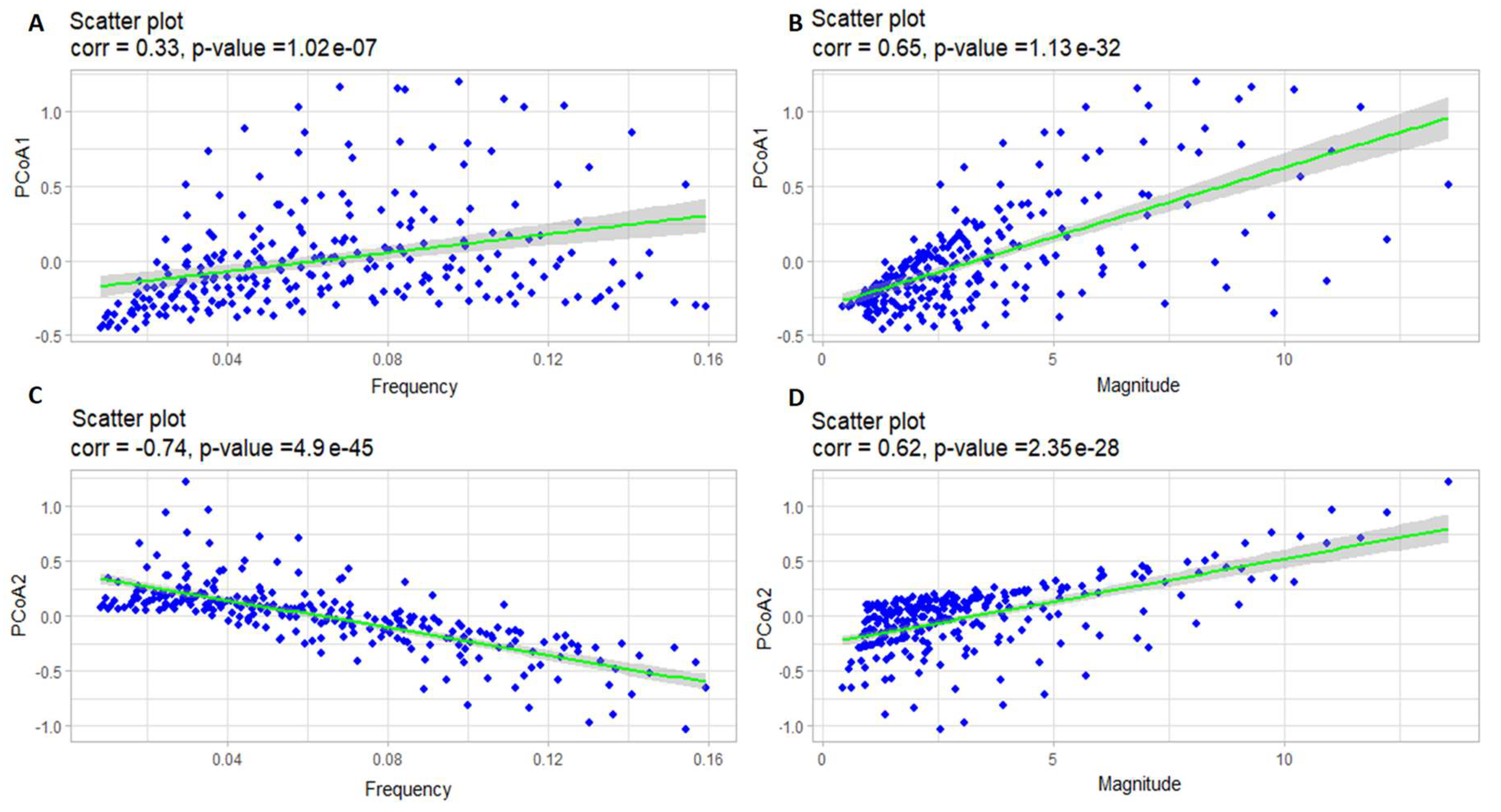 | PCoA2 | -0.33 | -0.05 | -0.37 | 0.59 |