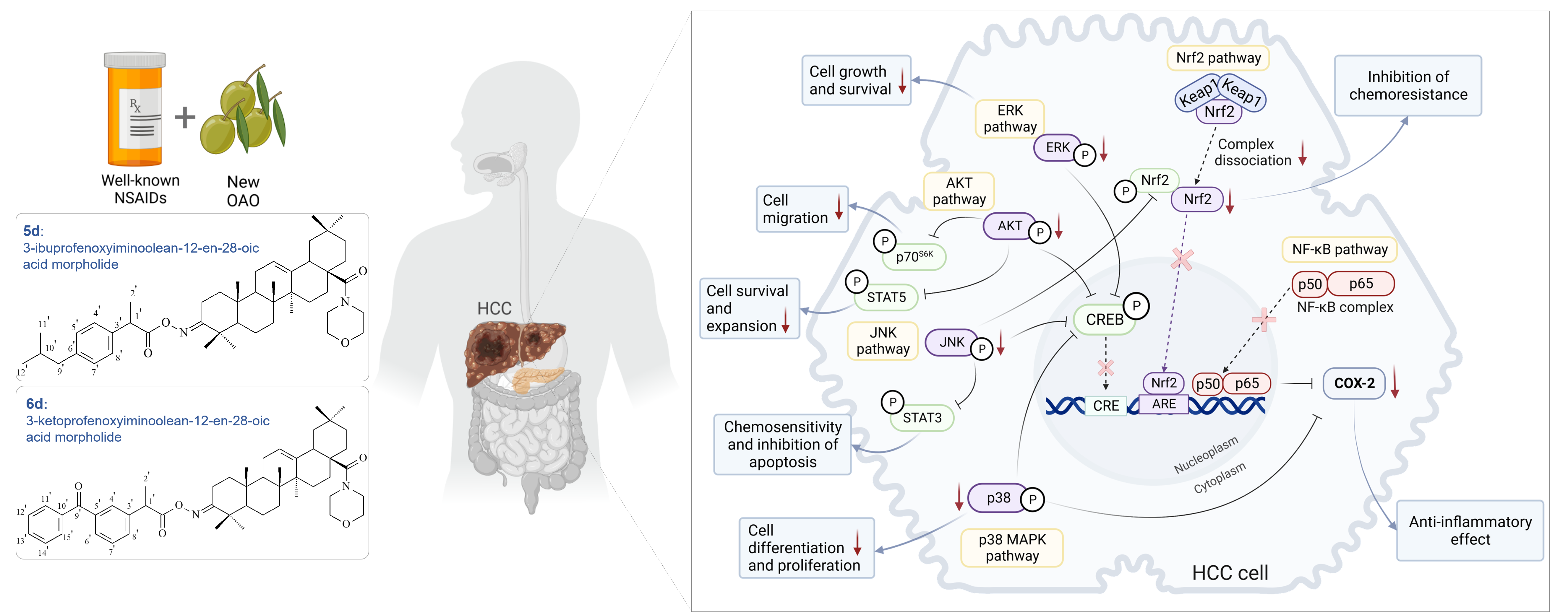 - Narożna, M.; Krajka-Kuźniak, V.; Bednarczyk-Cwynar, B.; Kucińska, M.; Kleszcz, R.; Kujawski, J.; Piotrowska-Kempisty, H.; Plewiński, A.; Murias, M.; Baer-Dubowska, W. Conjugation of diclofenac with novel oleanolic acid derivatives modulate nrf2 and nf-κb activity in hepatic cancer cells and normal hepatocytes leading to enhancement of its therapeutic and chemopreventive potential. Pharmaceuticals 2021, 14, 688. [Google Scholar] [CrossRef] [PubMed]