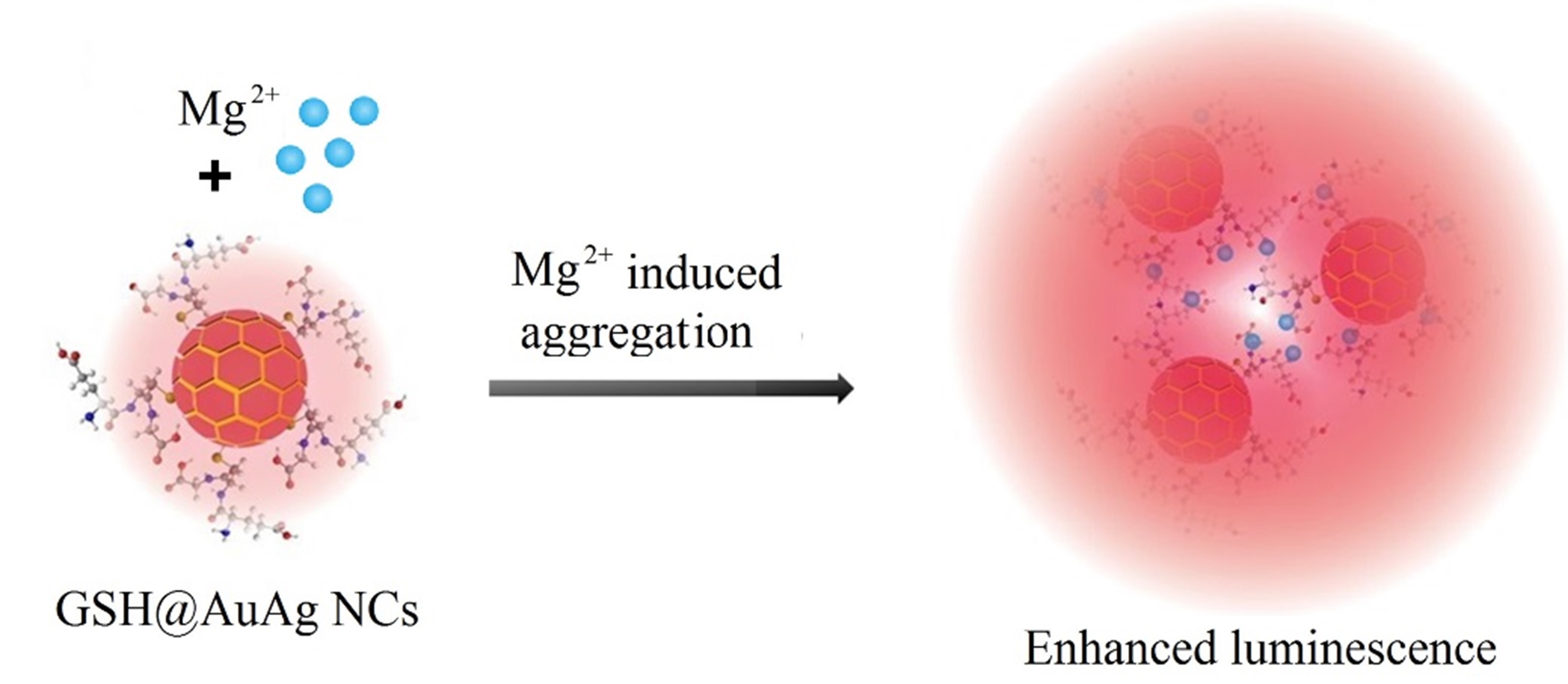 3.3. Mechanism of Mg2+-Mediated Fluorescence Enhancement of GSH@AuAg NCs