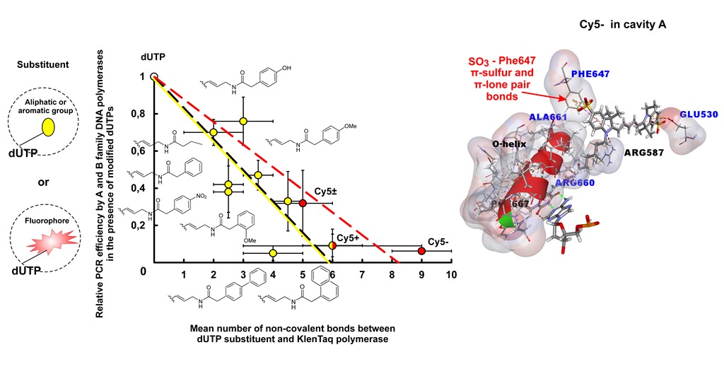 3.3. The Role of Non-Covalent Interactions between Low-Molecular-Weight Substituents Attached to the C5 Position of the Pyrimidine ring of dUTPs and the Amino Acid Residues of Taq DNA Polymerase in PCR Efficiency