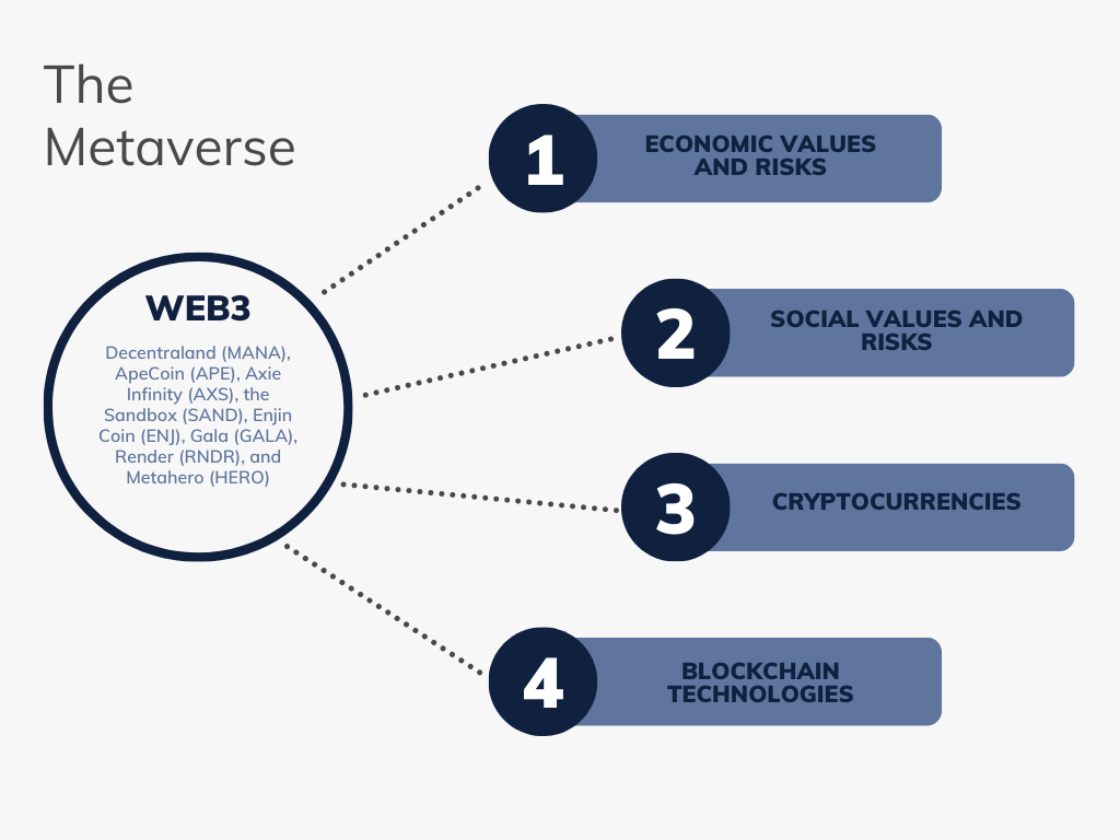 30] pedantically evaluates the essence of Fintech investments in European banking services, elucidating key criteria and offering indispensable insights into optimal investment alternatives. Notably, the emphasis on payment and money-transferring systems as paramount Fintech investment alternatives presents a foundational benchmark in the industry. Within this rich tapestry of Fintech investigations, "The Rise and Fall of Cryptocurrencies: Defining the Economic and Social Values of Blockchain Technologies and Assessing the Opportunities, and Risks of the Metaverse" offers an innovative and integrative exploration of blockchain technologies and their interplay with the metaverse. By seamlessly weaving the threads of cryptocurrencies' economic and social values, this research transcends the conventional boundaries of financial technology discussions and ventures into the evolving realms of the Metaverse. The novelty of this study is underscored by its multidisciplinary approach, integrating the core tenets of Fintech investment strategies with the multifaceted nuances of blockchain and the metaverse. In doing so, it not only complements existing works but also carves a distinct niche in contemporary financial and technological scholarship, presenting fresh vistas and research trajectories in the interplay of Fintech, blockchain, and virtual realms.