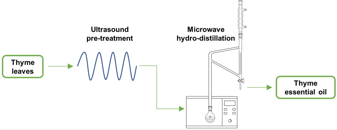 Microwave-assisted hydro-distillation (MWHD) combined with ultrasound pre-treatment of aromatic herbs to extract EOs was successfully employed [