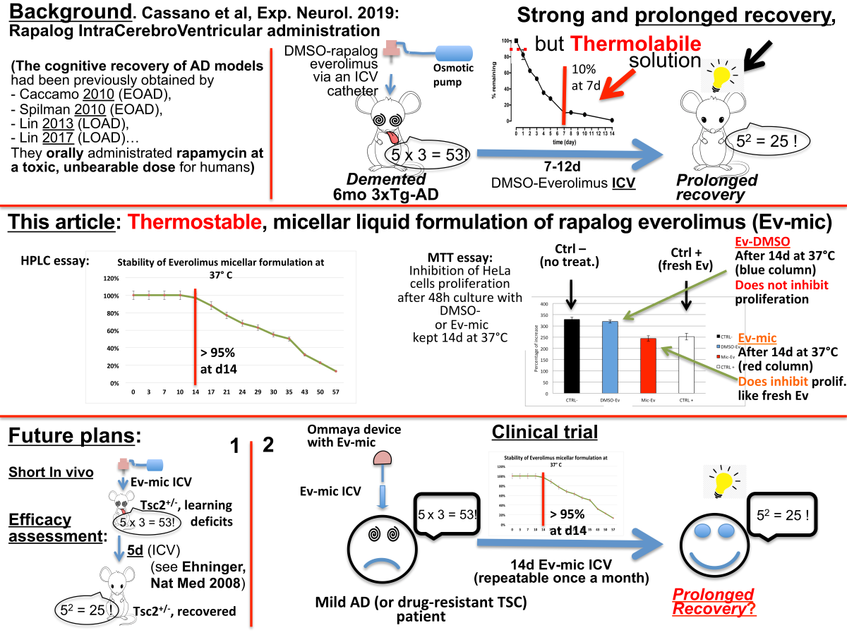 - Cassano, T.; Magini, A.; Giovagnoli, S.; Polchi, A.; Calcagnini, S.; Pace, L.; Lavecchia, M.A.; Scuderi, C.; Bronzuoli, M.R.; Ruggeri, L.; et al. Early Intrathecal Infusion of Everolimus Restores Cognitive Function and Mood in a Murine Model of Alzheimer’s Disease. Exp. Neurol. 2019, 311, 88–105. [Google Scholar] [CrossRef]