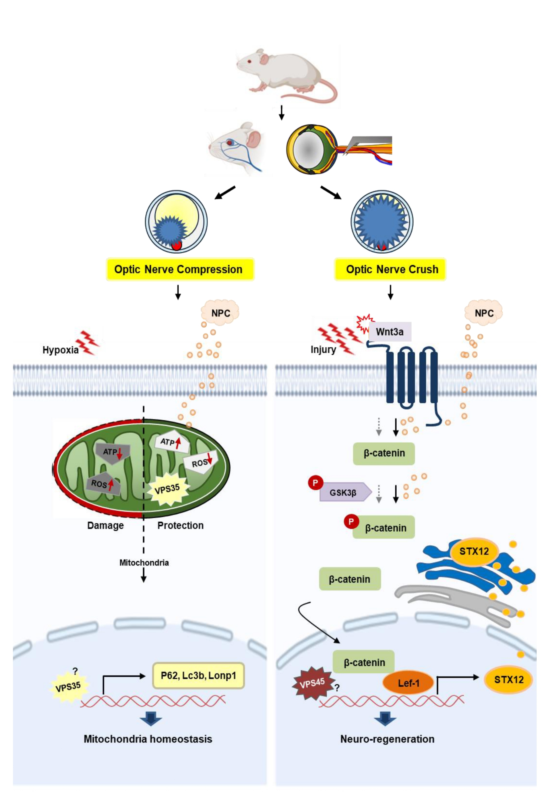 In this study, we also identified a novel target, Syntaxin12, which is regulated by NPCs during the RGCs recovery process. Syntaxin12 belongs to the SNARE (soluble NSF attachment protein receptor) protein family, which plays a crucial role in vesicle fusion events during intracellular trafficking [