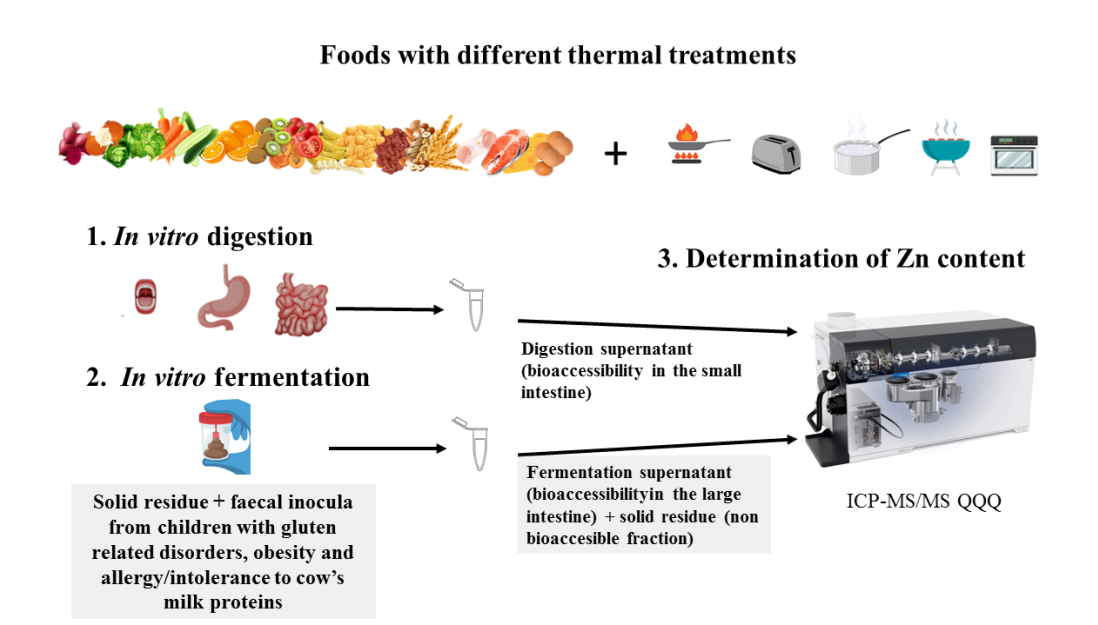 - García-Conde, U.; Navarro-Alarcón, M.; Navajas-Porras, B.; Hinojosa-Nogueira, D.; Pérez-Burillo, S.; Pastoriza, S.; Navarro-Moreno, M.; Rufián-Henares, J. A. Total Zn amount and bioaccesible fractions of foods in the small and large intestine after in vitro digestion and fermentation with fecal material of healthy adults and children: influence of culinary techniques. Food Res. Intern. 2023, 169, 112817. [Google Scholar] [CrossRef]