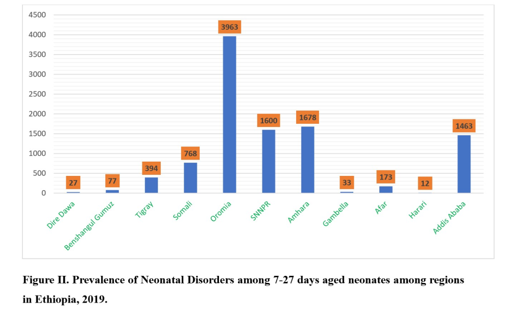Conclusions: Despite SDGs promises and national neonatal care interventions, finding revealed that high number of neonatal disorders and neonatal death is still occurring in the country. As a result, the country is suffering from high number of neonatal disorders and deaths as well as health losses characterized by DALYs, YLD and YLL. The highest neonatal disorders and health loses had occurred in Oromia region where as Addis Ababa city had the highest preterm birth in 2019. The three regions mostly affected by the prevalence of neonatal disorders and neonatal deaths as well as DALYs, YLL and YLD were Oromia, Amhara and SNNPR respectively. Unless, peace is ensured the problem will continue to surface and will trigger the country from achieving national and global promises. Though Addis Ababa has the second highest early neonatal sepsis, death as a result of neonatal sepsis and other infection was very low.