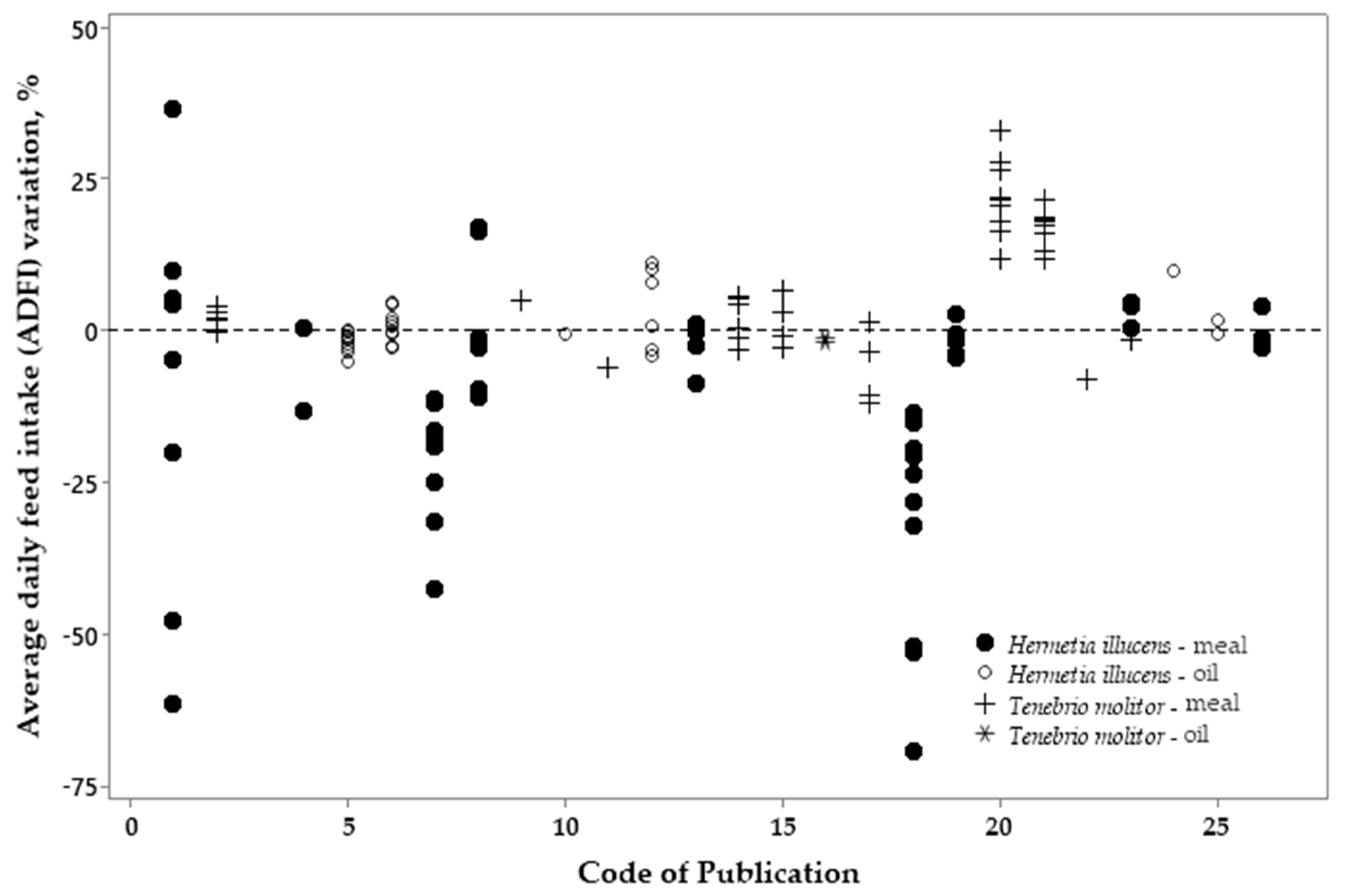4.2. Metanalysis: exploratory analyses of insect products on broiler performance