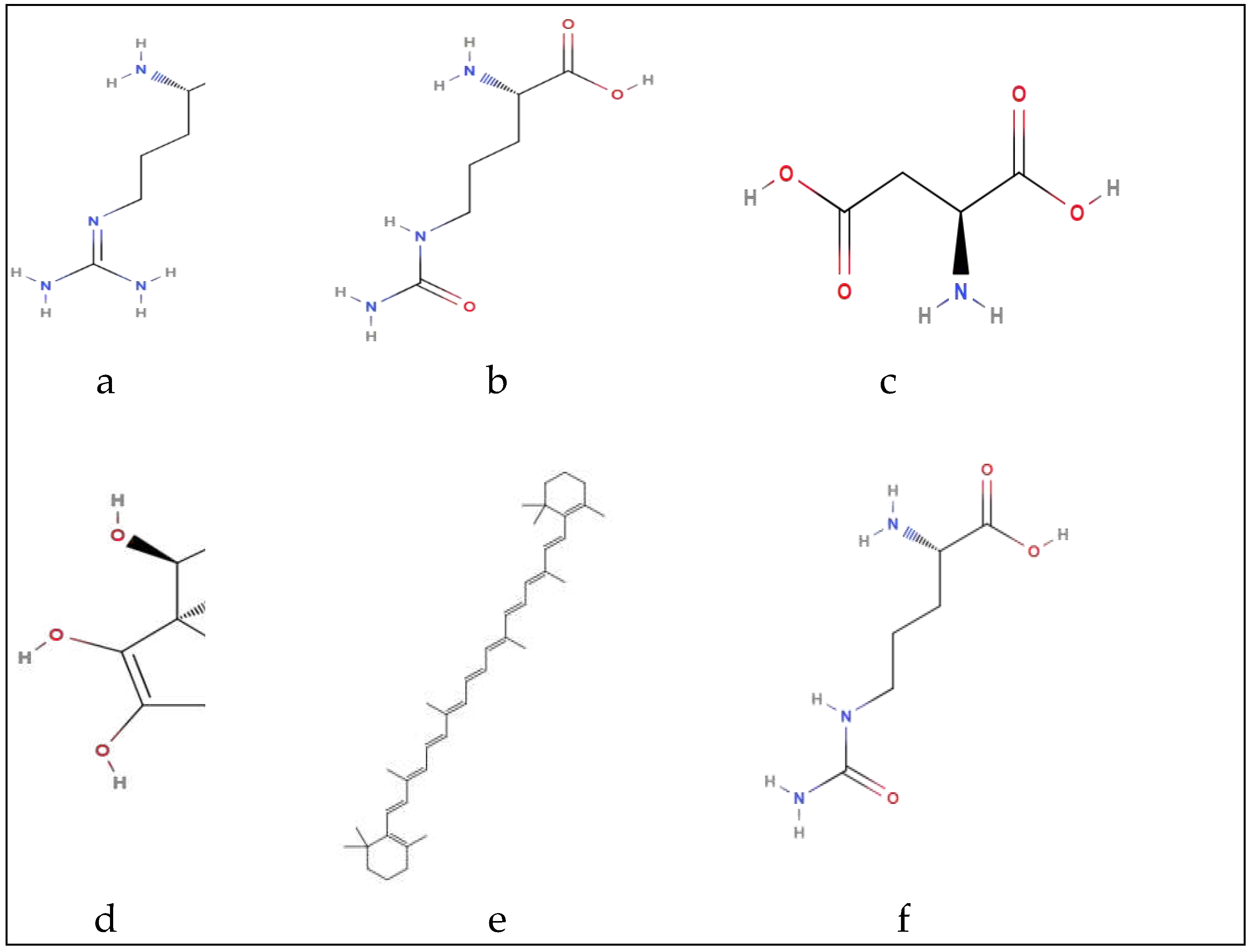 Citrulline Leucine Glutamic acid, Aspartic acid Arginine |