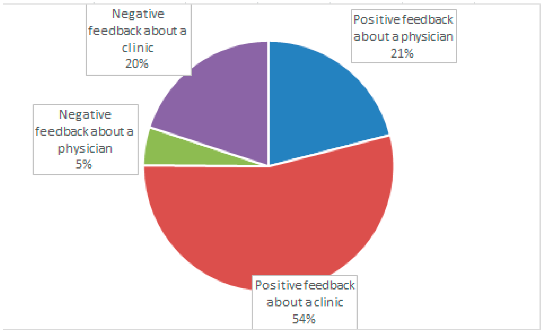 - Some reviews were of both a clinic and a physician without mentioning the latter’s name. This prevented the named entity recognition tool from assigning the reviews to the mixed class. This problem could be solved by parsing the sentences further with identifying a semantically significant object unspecified by a full name.