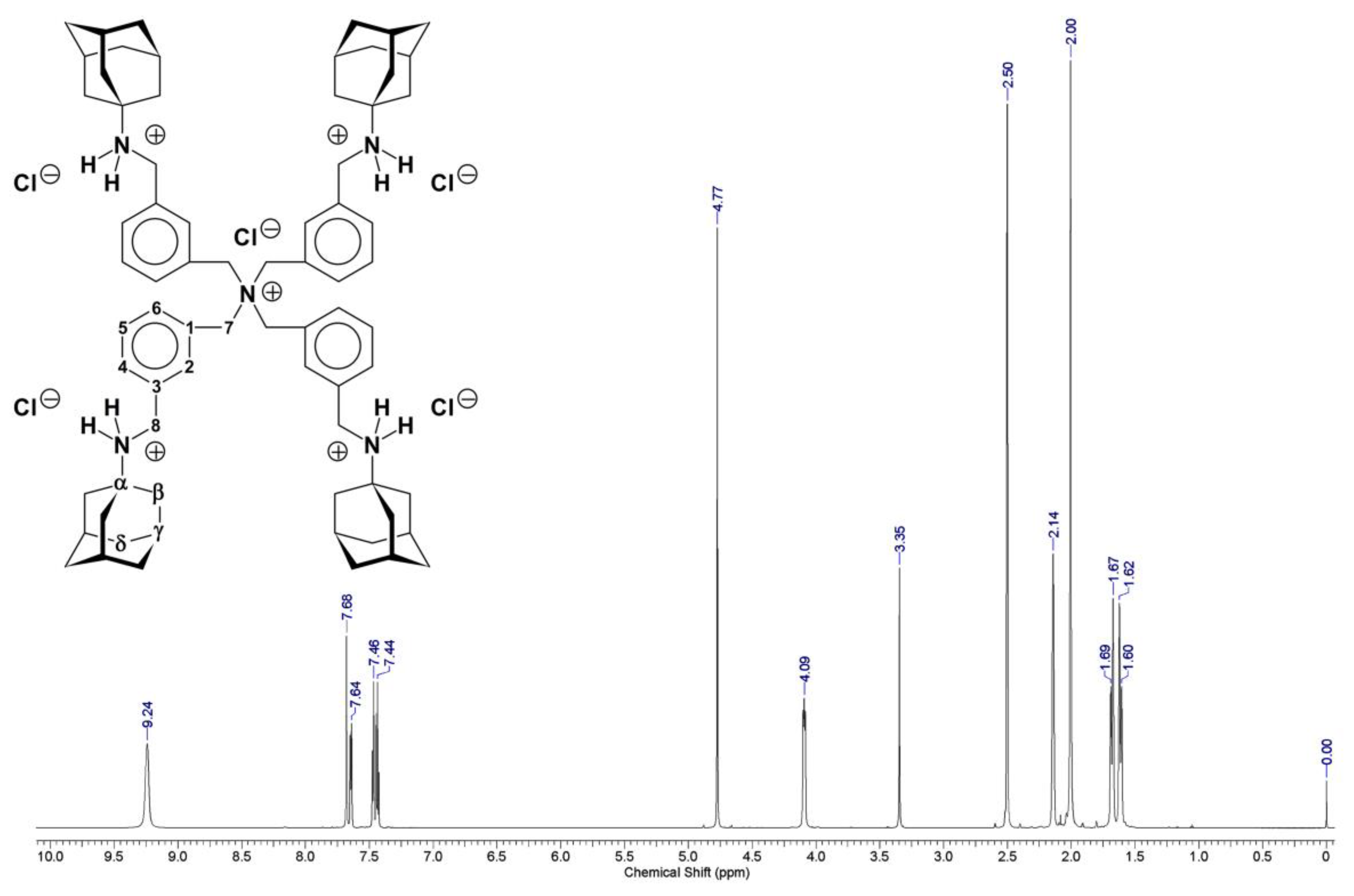 4.4.2. Pure (Salt-Free) Tetrakis{3-[(tricyclo[3.3.1.13,7]decan-1-ammonio)methyl]benzyl}ammonium Pentachloride (Compound 1, PT162, NSC 796018)