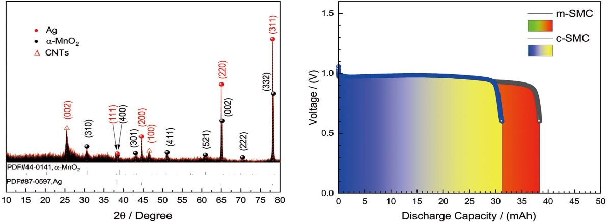 Figure 2, carbon, oxygen, silver, and manganese were all detected. Their atom concentrations in m-SMC are also shown in the figure.