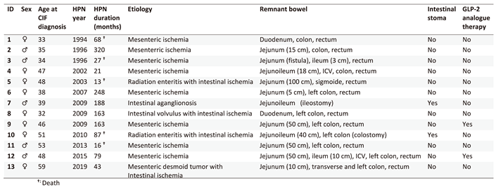 - Rocha, A. , Pereira, I., Ramalhão AM. Home total parenteral nutrition by absence of jejune and ileum (case report) [original title in portuguese: Nutrição paretérica total dominciliária por ausência de jejuno-íleo (caso clínico)]. Arquivos Portugueses de Cirurgia 1995, 4, 101–104. [Google Scholar]
