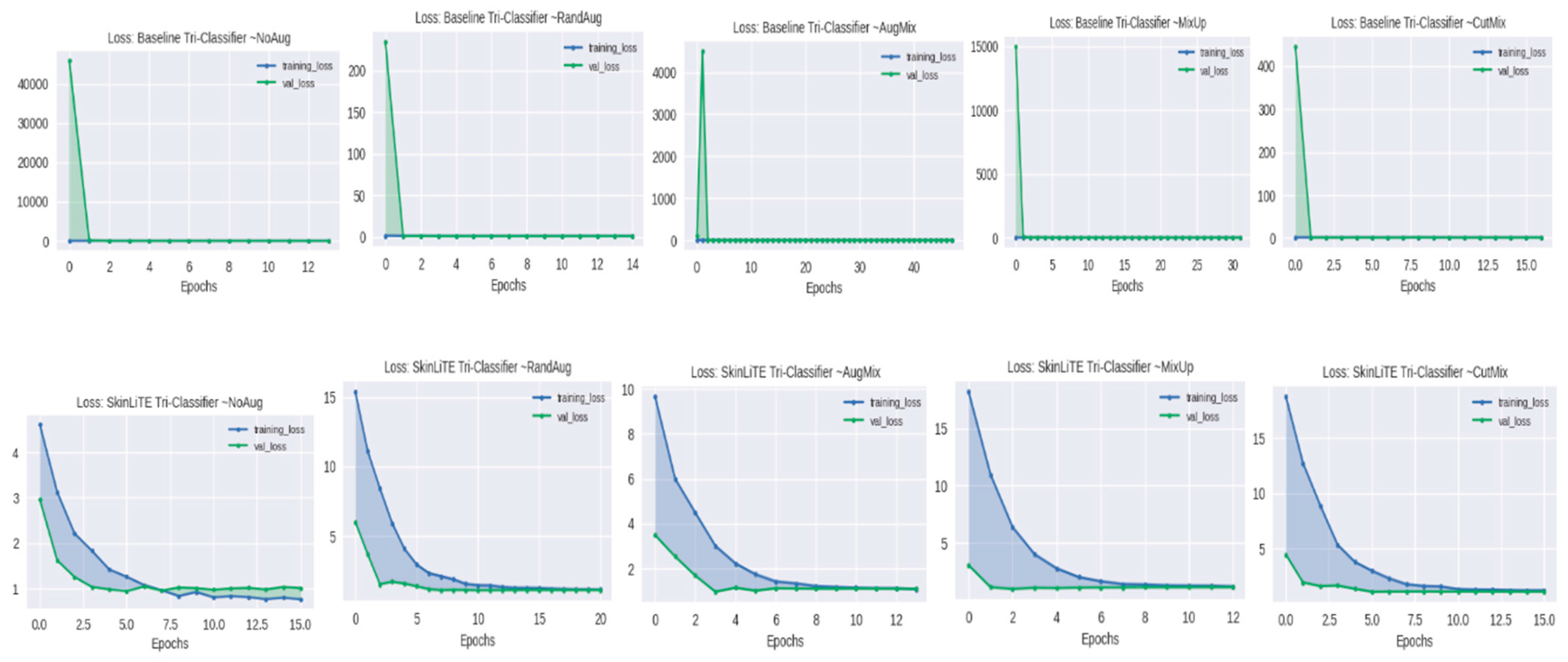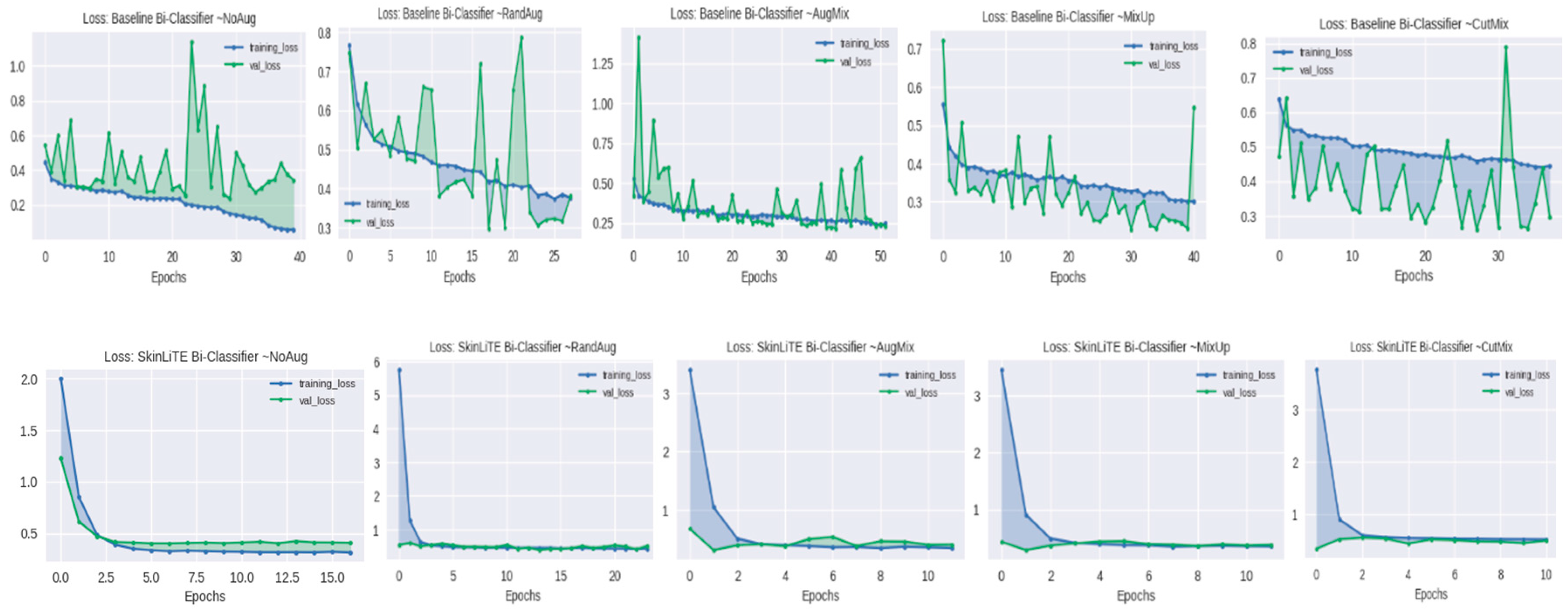 - SkinLiTE is trained for multi-tier classification to handle different classification scenarios: Bi-Classifier: Differentiates between benign and malignant lesions., Tri-Classifier: Categorizes lesions into melanoma, nevus, or seborrheic keratosis., and N-Classifier: A more granular classification that includes multiple types of skin conditions like Actinic Keratosis (AK), Basal Cell Carcinoma (BCC), Benign Keratosis-like Lesions (BKL), Dermatofibroma (DF), Melanoma (MEL), Nevus (NV), Squamous Cell Carcinoma (SCC), and Vascular Lesions (VASC).