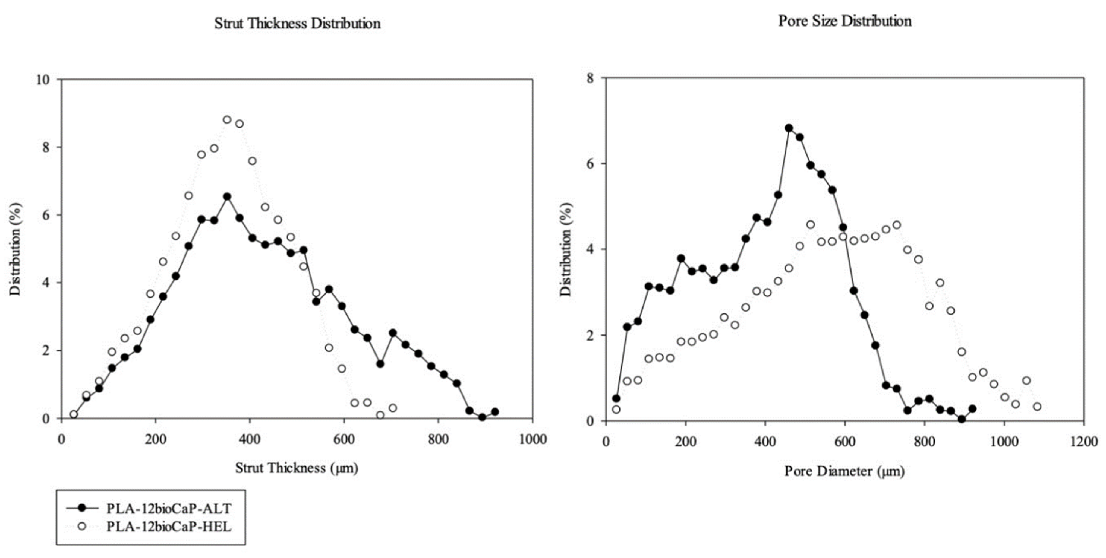 53], who synthesized scaffold using a brittle material such as BCP, observed that an increase in the size of the macropores resulted in similar compressive strength values.