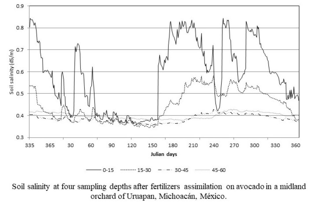 - Méndez–García, T.; Palacios–Mayorga, S.; Rodríguez–Domínguez, L. Análisis de suelo, foliar y de calidad del agua para el cultivo del aguacatero. Terra Latinoamericana. 2008, 26, 145–155. [Google Scholar]
