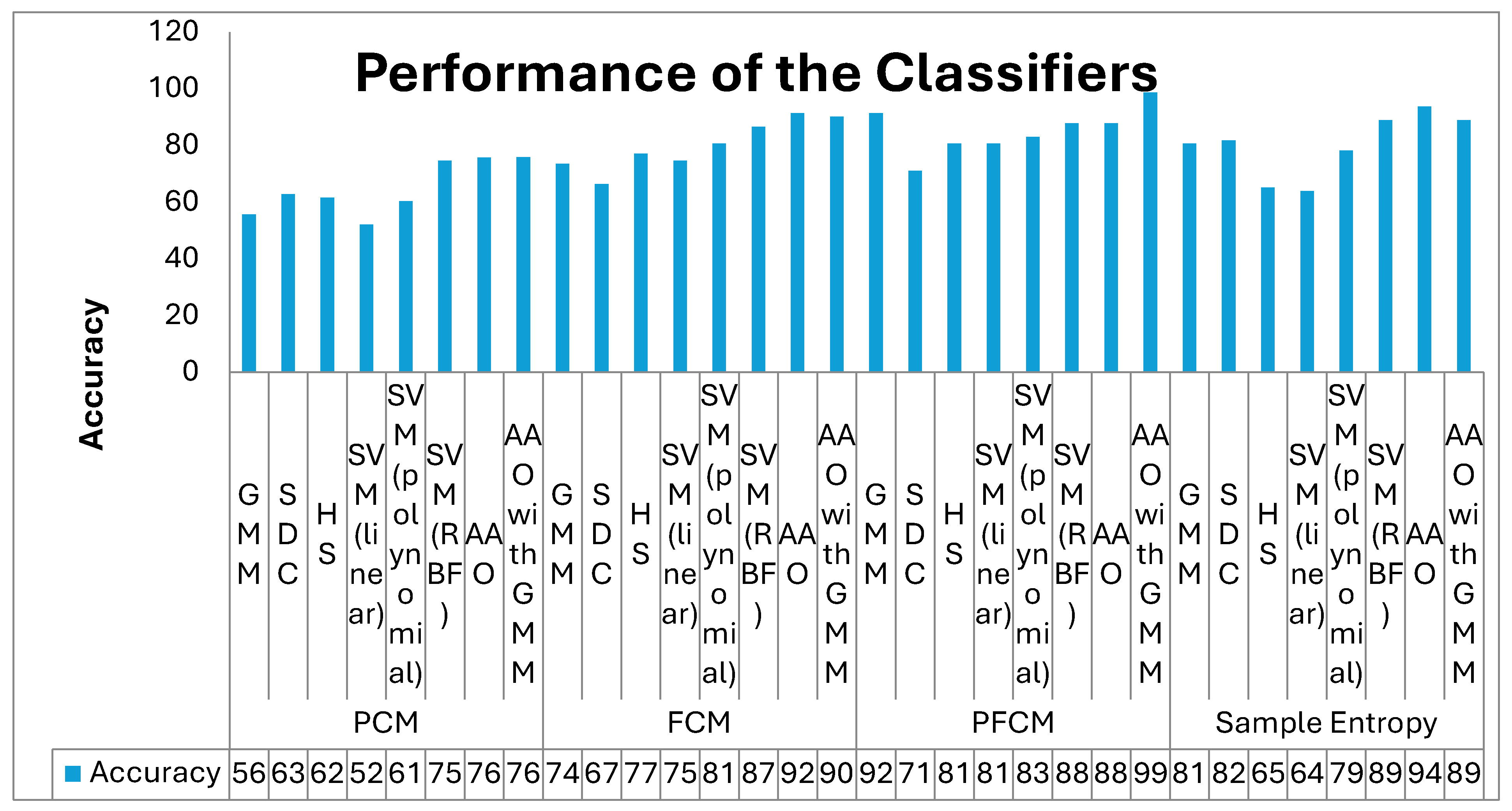 | Sample Entropy | GMM | 80.95 | 79.49 | 0.63 | 0.80 | 19.05 | 65.96 |
