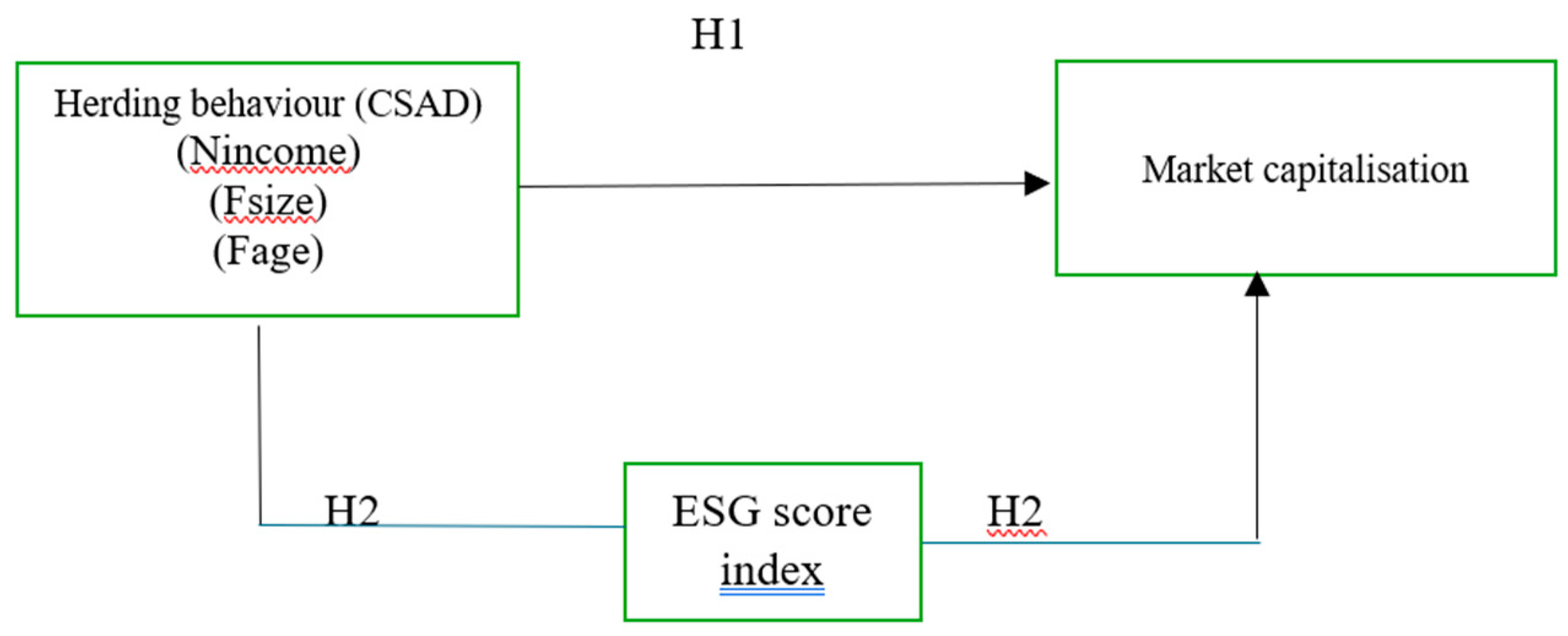 H2:ESG has a positive impact on the relationship between herding behaviour and market capitalization