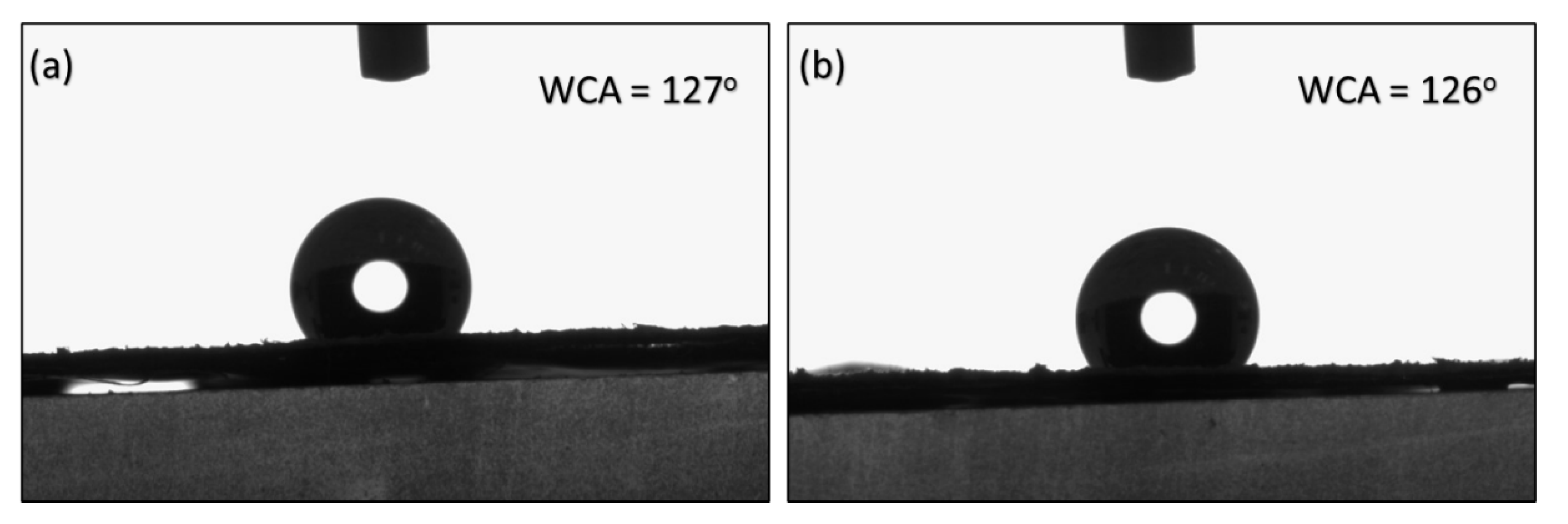 The contact angles of M2 and M3 are recorded at 127° and 126°, respectively and presented in
