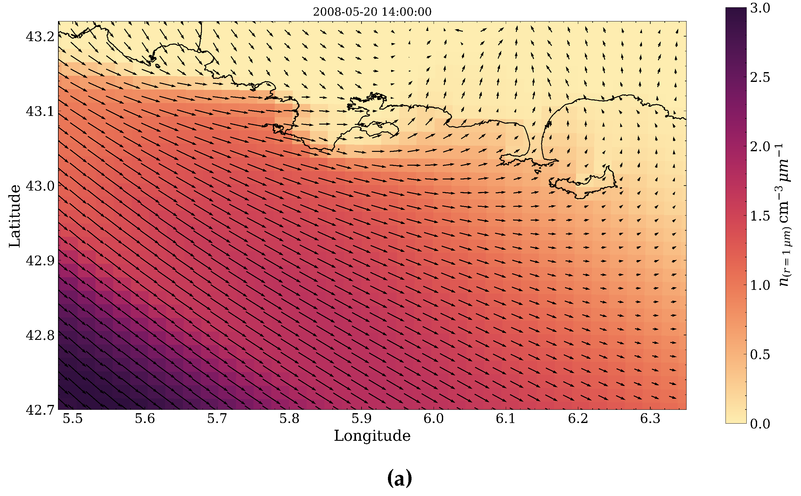 - Limoges, A.; Yohia, C.; Rodier, Q.; van Eijk, A.; Piazzola, J. High-resolution modeling of the spatiotemporal variations in aerosol extinction in a complex coastal area. Environmental Effects on Light Propagation and Adaptive Systems VI; SPIE Remote Sensing, , 2023; Vol. 12731, p. 127310C. [CrossRef]