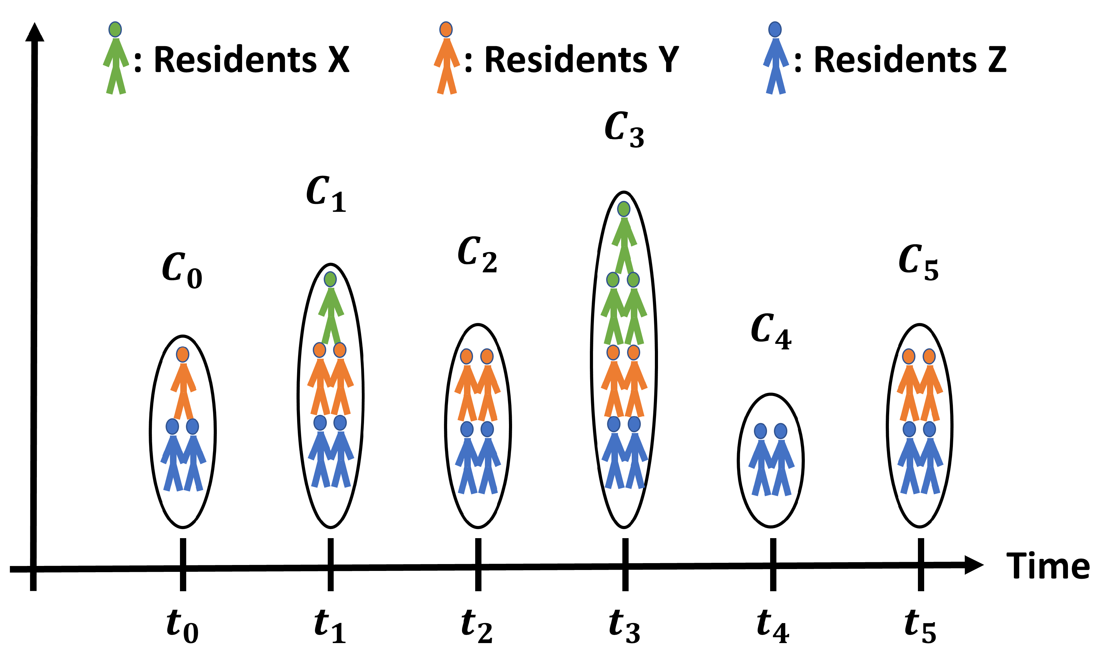 , depicting a time dependent residents composition vector