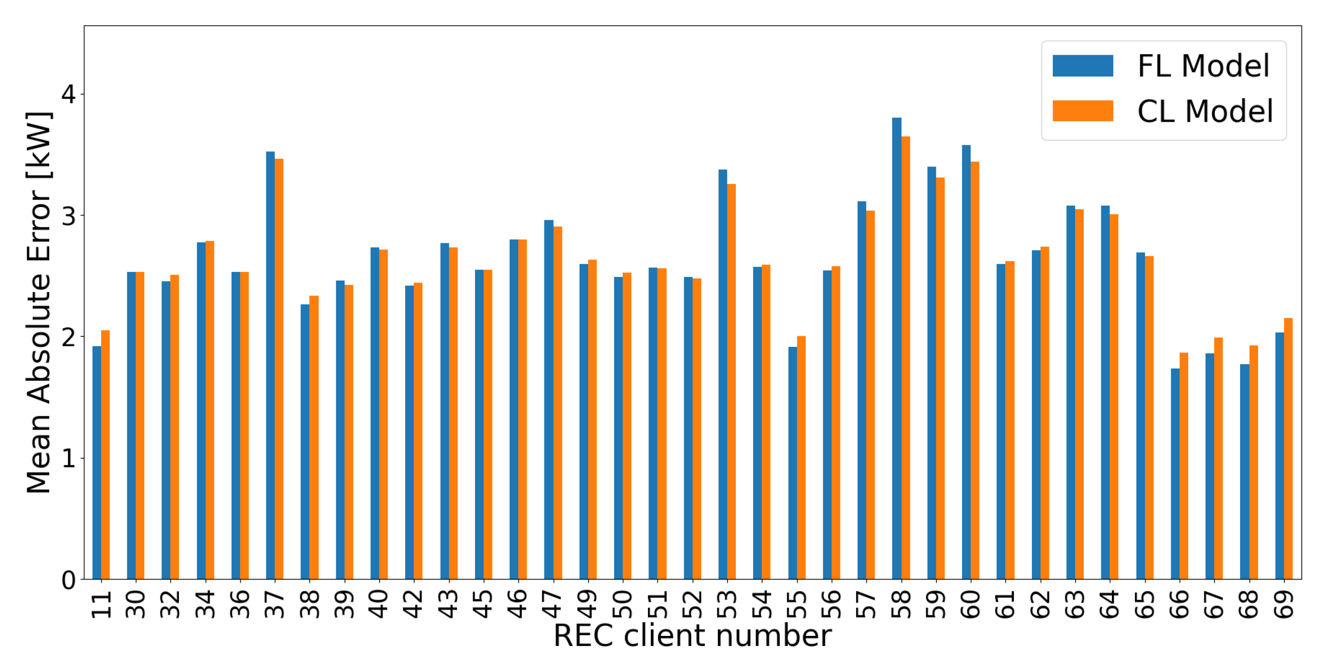 of the errors from forecast models trained centrally on multiple RECs neglecting