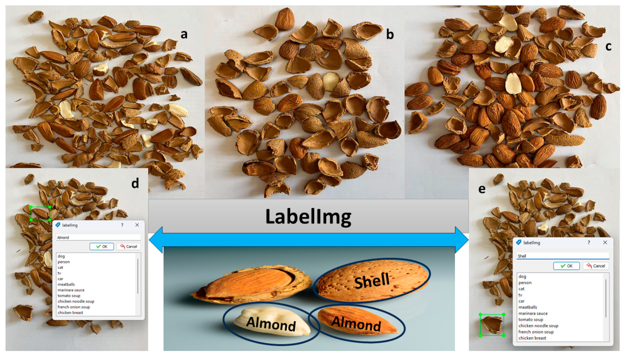 Figure 1 showcases the LabelImg framework used for labeling almonds and shells. Specifically,