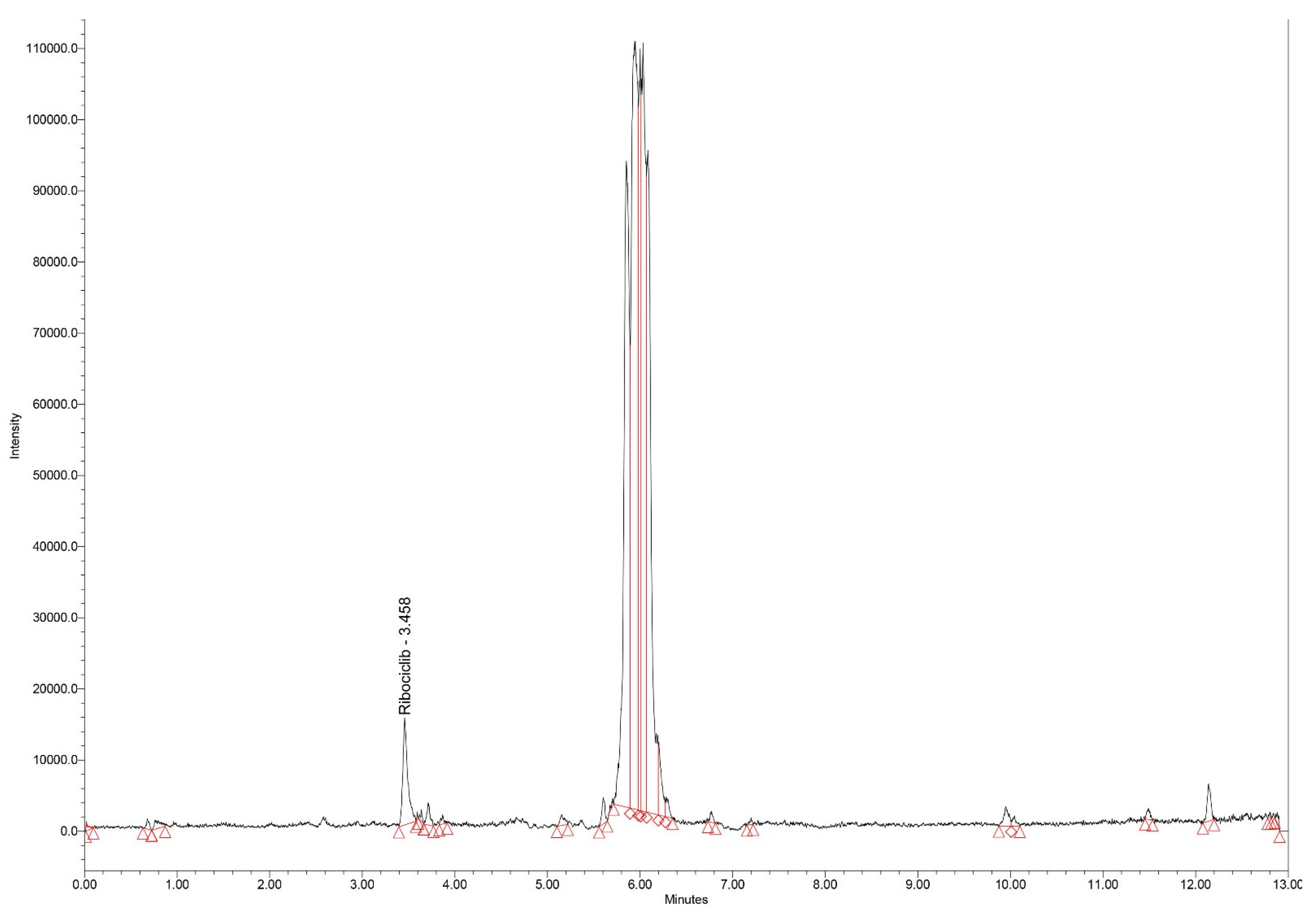 The last drug molecule involved in our study, ribociclib, is part of cyclin-dependent kinases (CDKs) inhibitors family, which also includes palbociclib, milciclib and abemaciclib. Some LC-MS/MS methods have been used in different clinical studies, which also reveal inter-individual differences in plasma/serum concentrations [