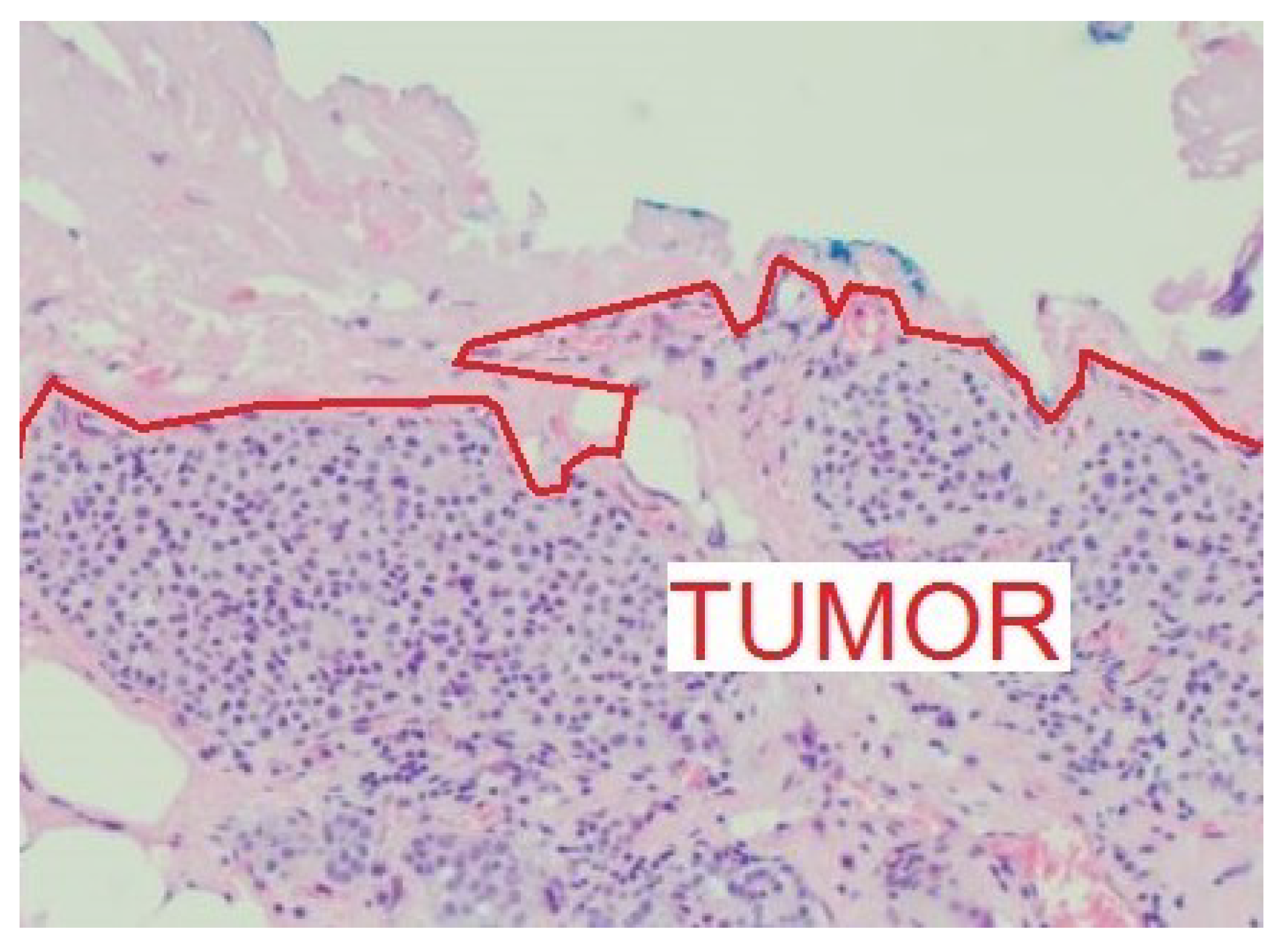 8]. A negative surgical margin is defined as no tumor on ink, where the ink is used to mark a side of the histological specimen (