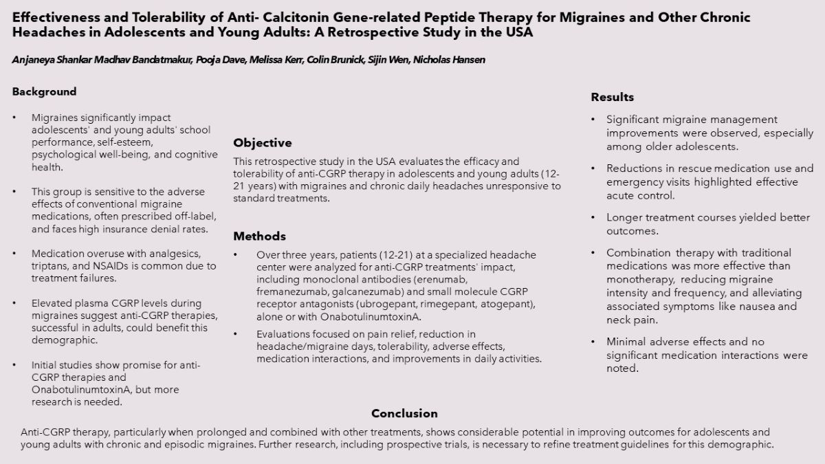 - Greene KA, Gentile CP, Szperka CL, et al. Calcitonin gene-related peptide monoclonal antibody use for the preventive treatment of refractory headache disorders in adolescents. Pediatr Neurol. 2021;114:62-67. [CrossRef]