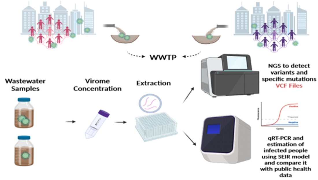 Wastewater surveillance can also be used to monitor and search for new genetic variants of pathogens to implement mitigation strategies before they spread. It can offer important and complementary information by providing frequency estimates of all variants circulating in a population by overcoming the sampling limit [