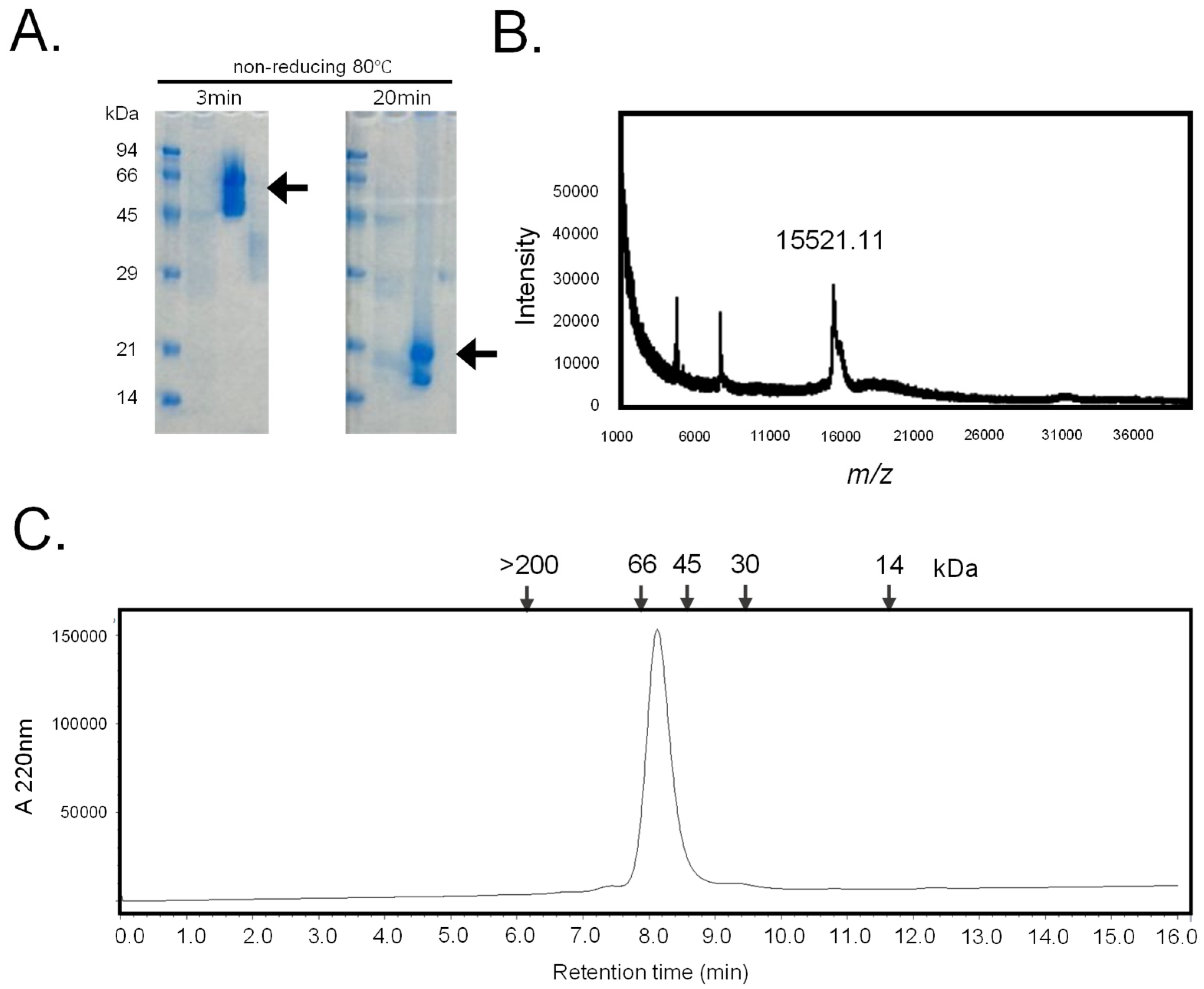 Figure 1B). Analysis by high-performance liquid chromatography coupled with a gel permeation column indicated a molecular mass of 60 kDa (