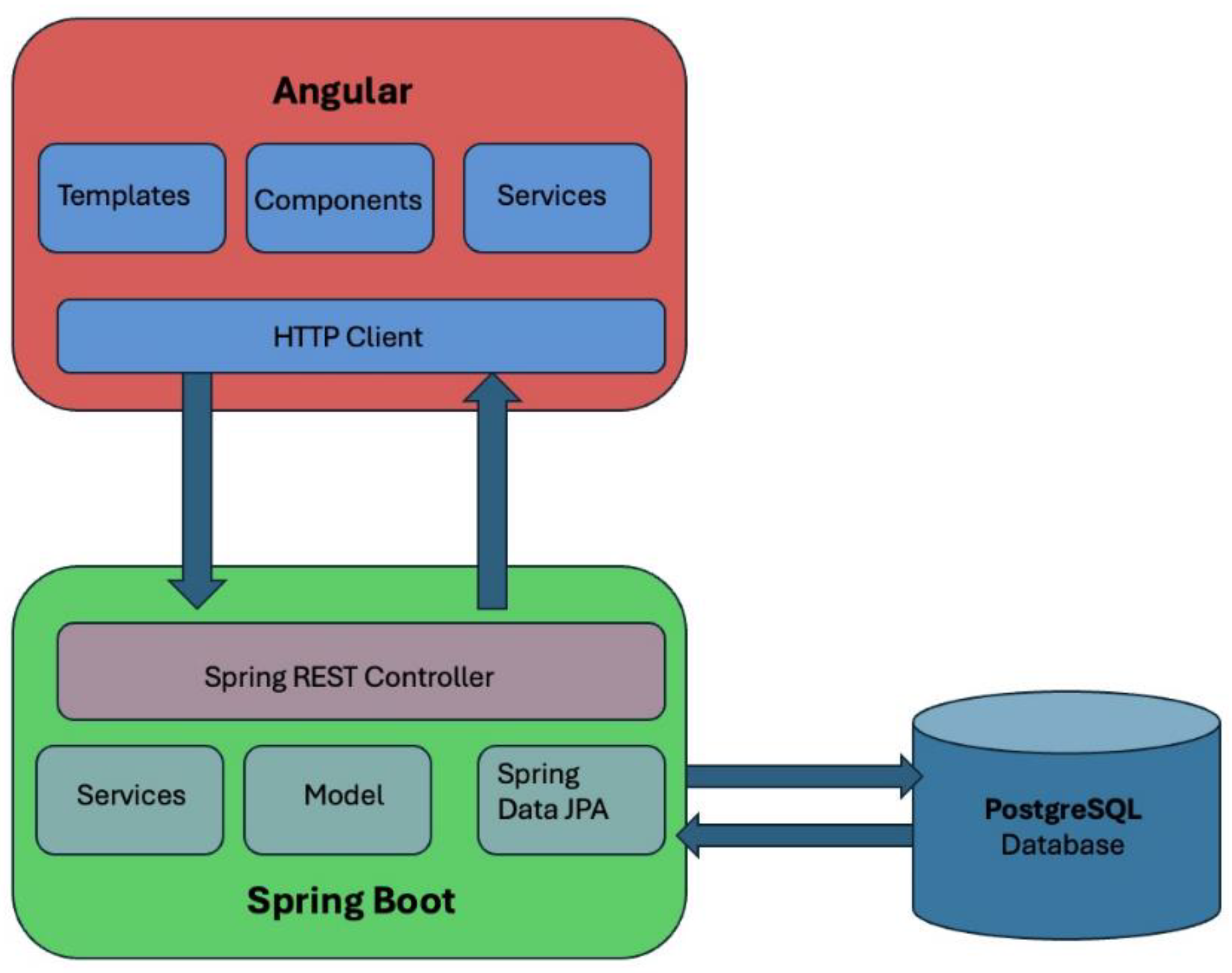 Figure 1). The proposed system is designed to adopt a client-server architecture, wherein the Angular-based frontend will establish communication with the Java-based backend via APIs.