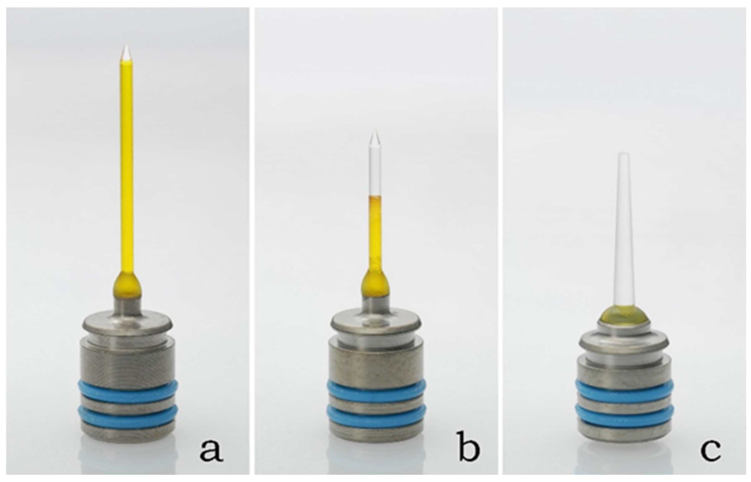 20]. Furthermore, Jezeršek et al. [22] reported that the SSP and AutoSWEEPS modes caused less extrusion, regardless of the laser energy than open-ended SNI. However, the pressure along the depth of the root canal appears to depend on the laser modality and FT design [23]. FTs for SSP and AutoSWEEPS LAI are rigid and can be conical, radial, or flat-ended, resulting in different laser energy emission patterns [