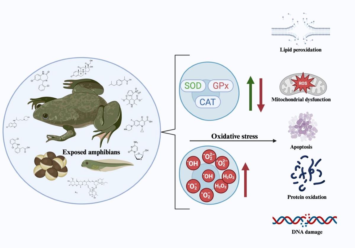 - Experimental investigations analyzing the impact of drug exposure on oxidative stress biomarkers in amphibians.